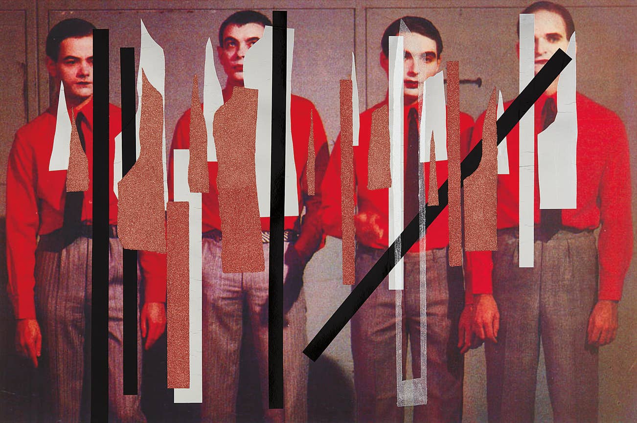 Digital scan, aluminum foil, glitter and vinyl in colors, on wove paper, the full sheet.