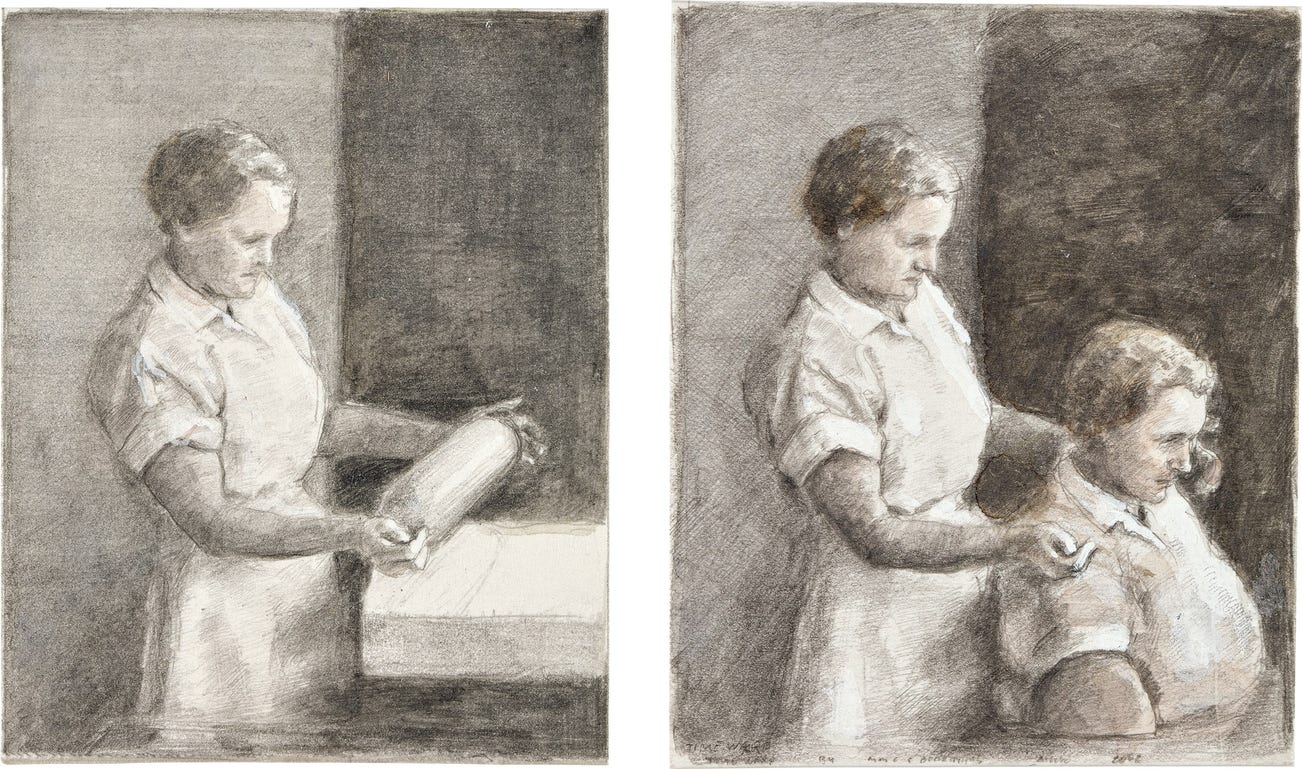 pencil and watercolor on board, in 2 parts