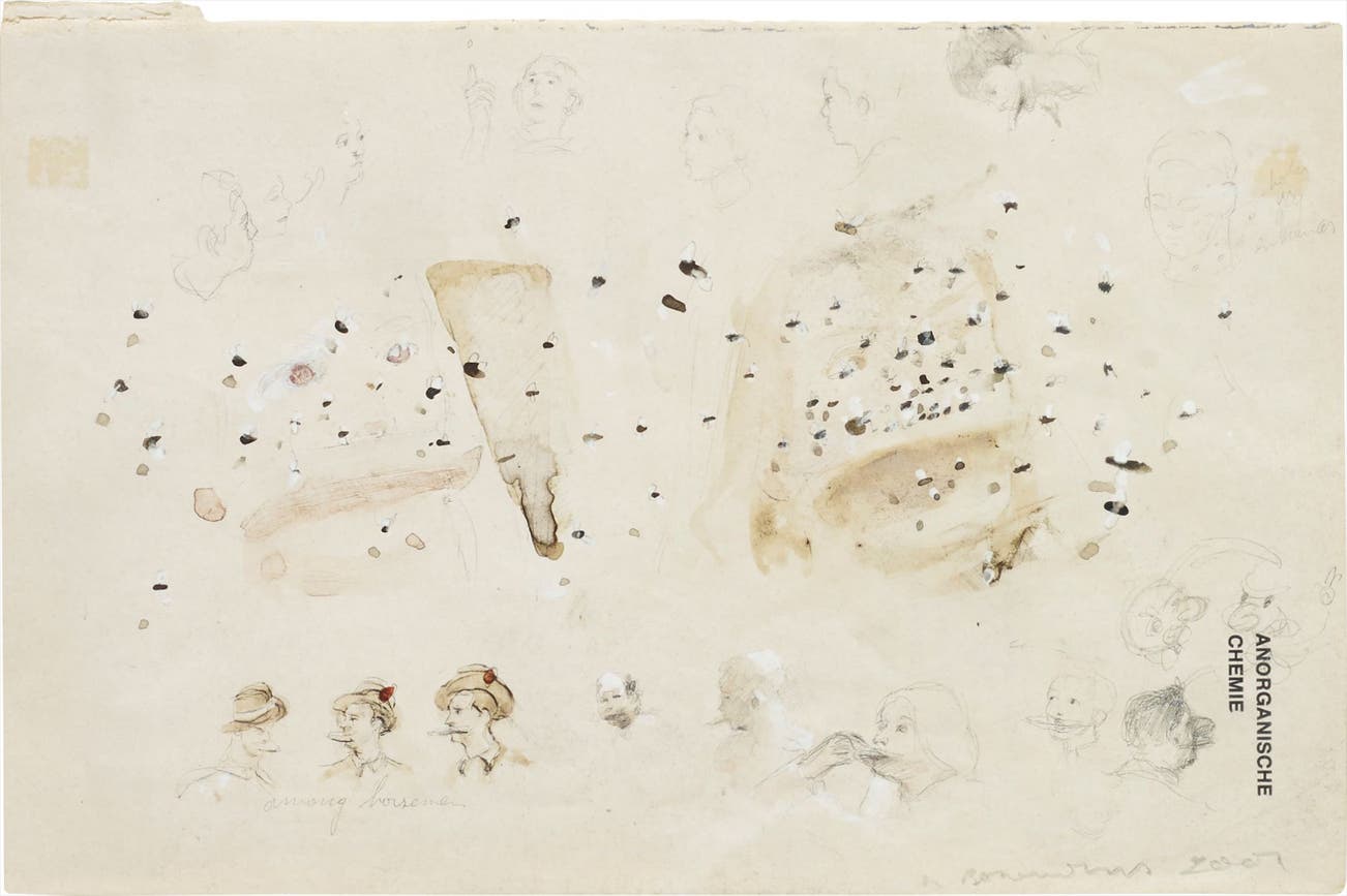 pencil, watercolour on book page