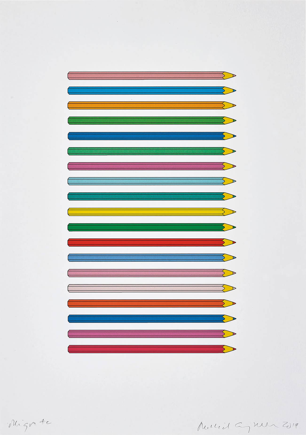 signed and dated 'Michael Craig Martin 2019' lower right; further titled 'Migrate' lower left