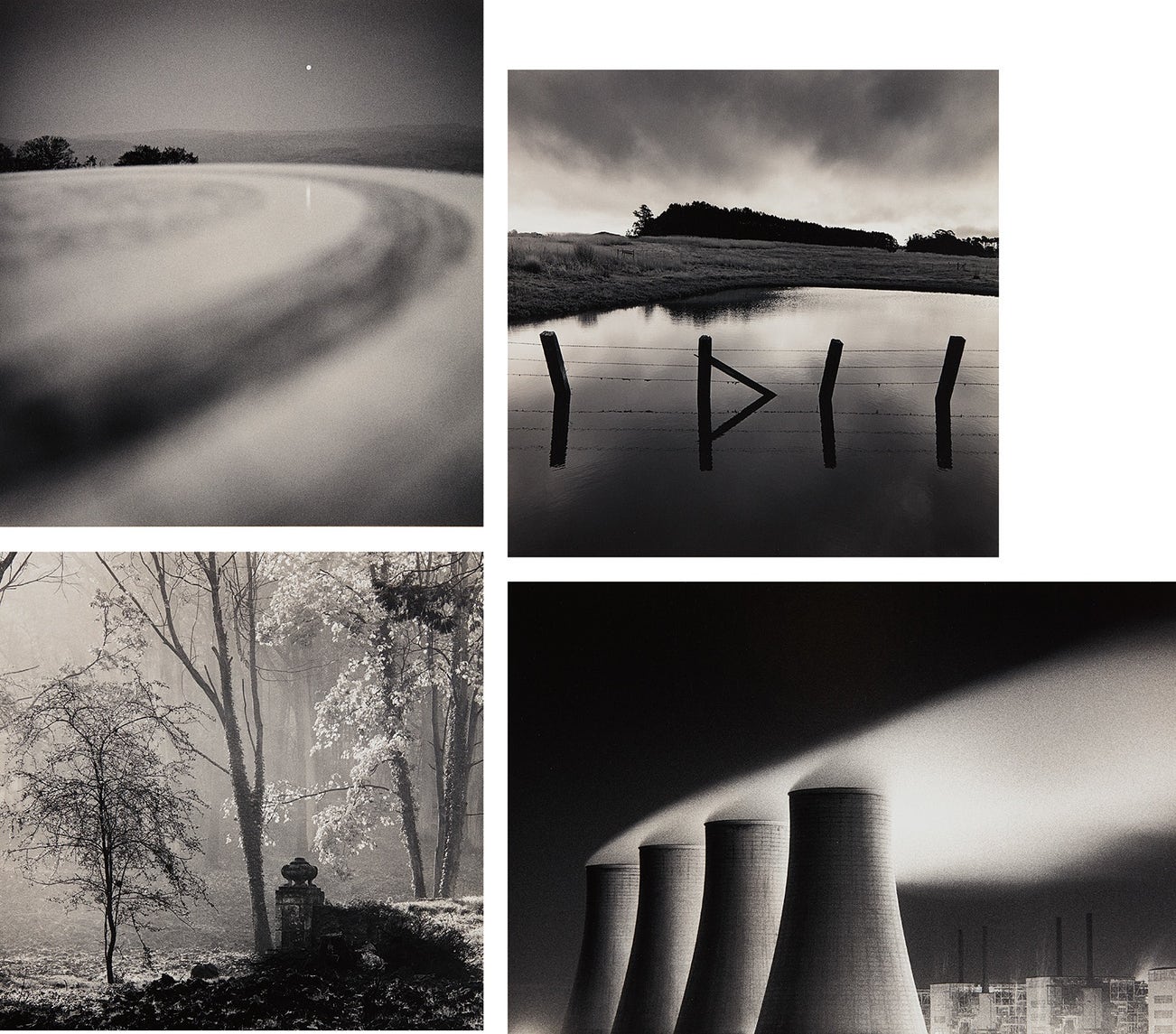 Moon and Sundial, Vezelay, France, 1993; Fence Posts, Tidal Lagoon, Elkhorn Slough, California, 1989; Le Desert de Retz, Study 4, France, 1988; Chapel Cross Power Station, Study I, Scotland, 1985