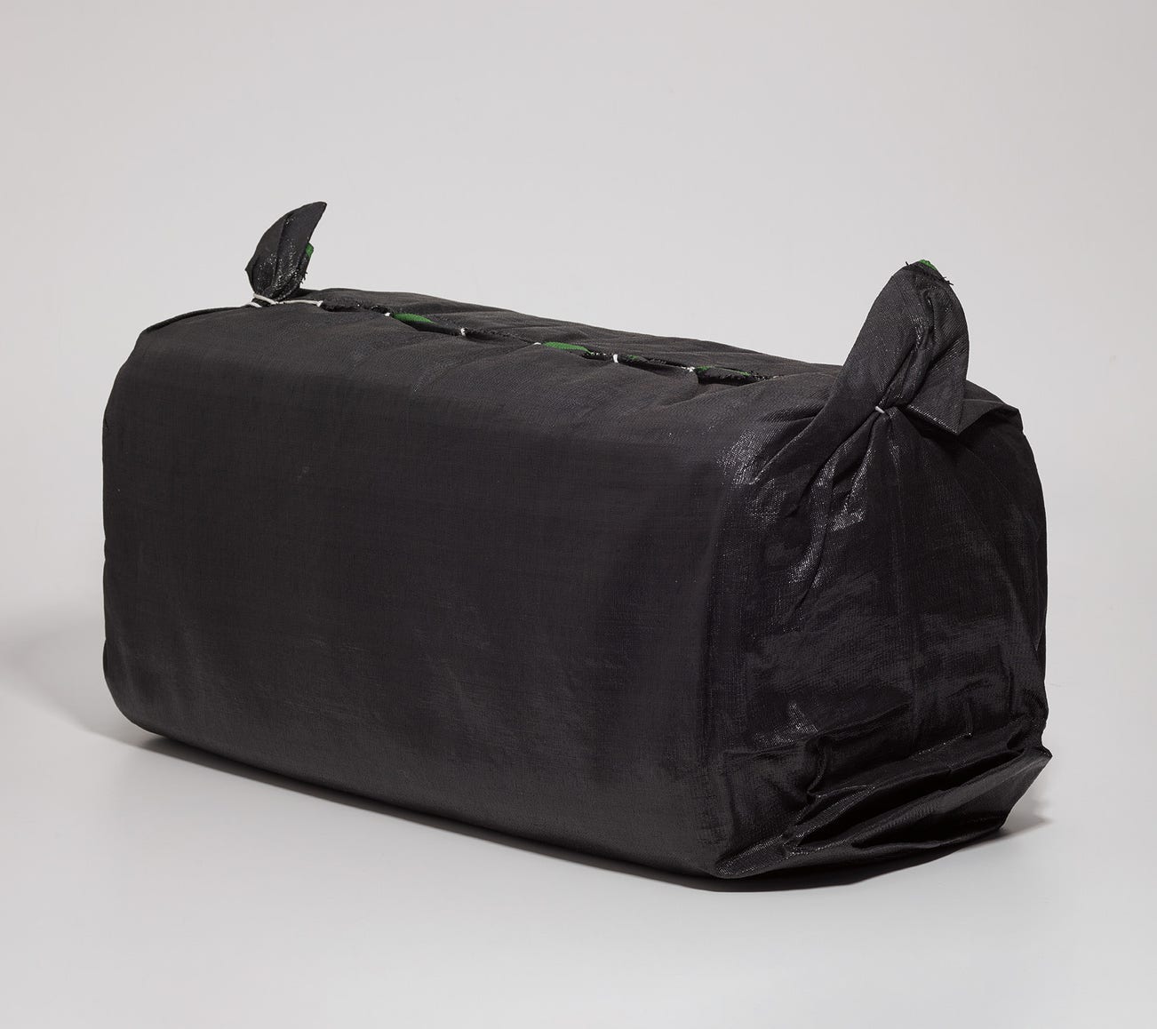 Multiple comprised of artificial grass wrapped in tarpaulin.