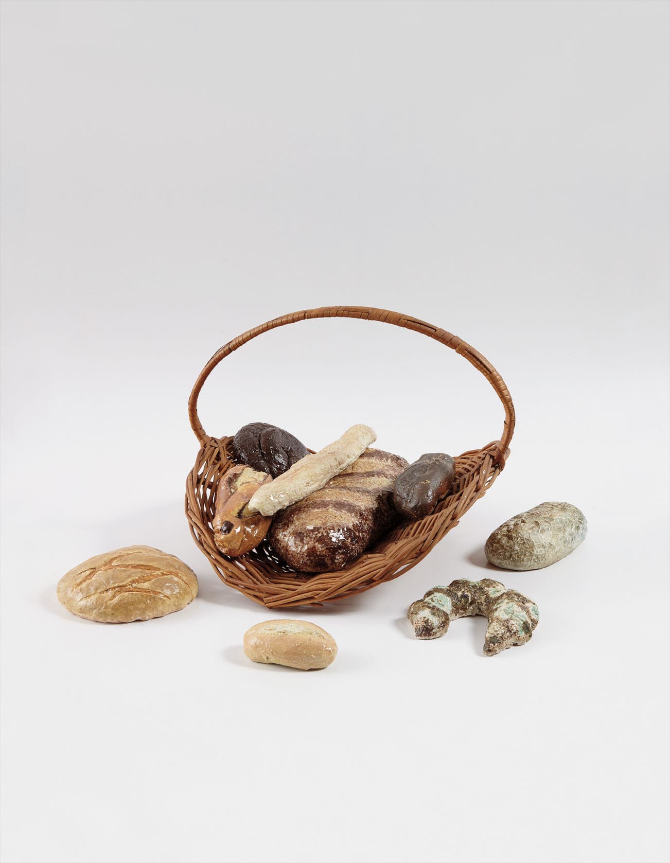 9 ceramic pieces, largest 3 1/4 x 6 3/4 x 17 1/2 in. (8.3 x 17.1 x 44.5 cm)