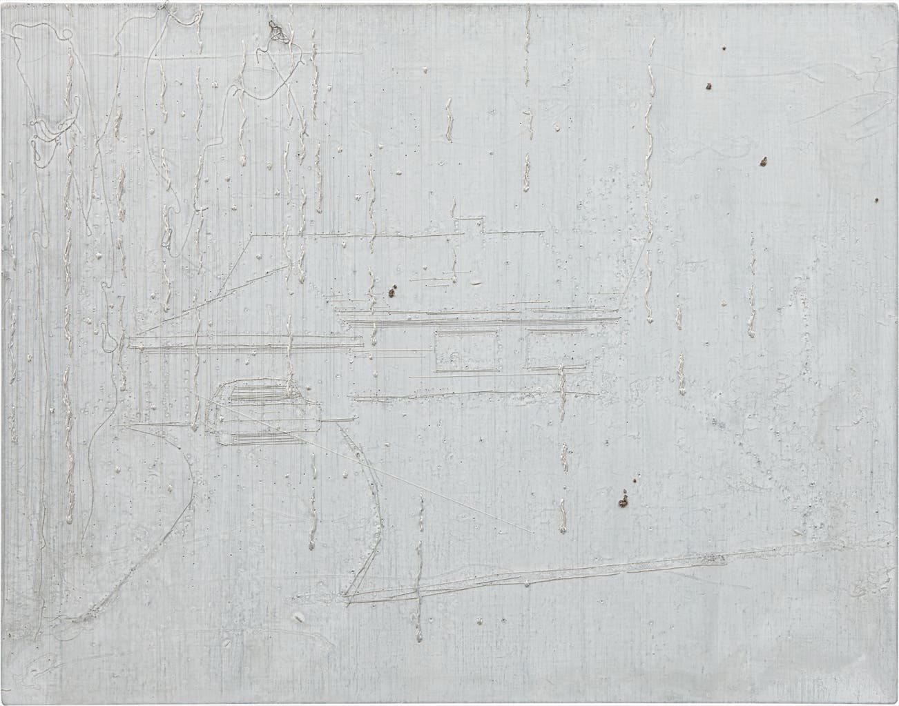 Signed, dated, titled and inscribed "Michael Raedecker '99/'01 acrylic & thread on canvas Berge L7 hand primed linen 56.5 x 71.5 cm 'Close'" along the overlap.