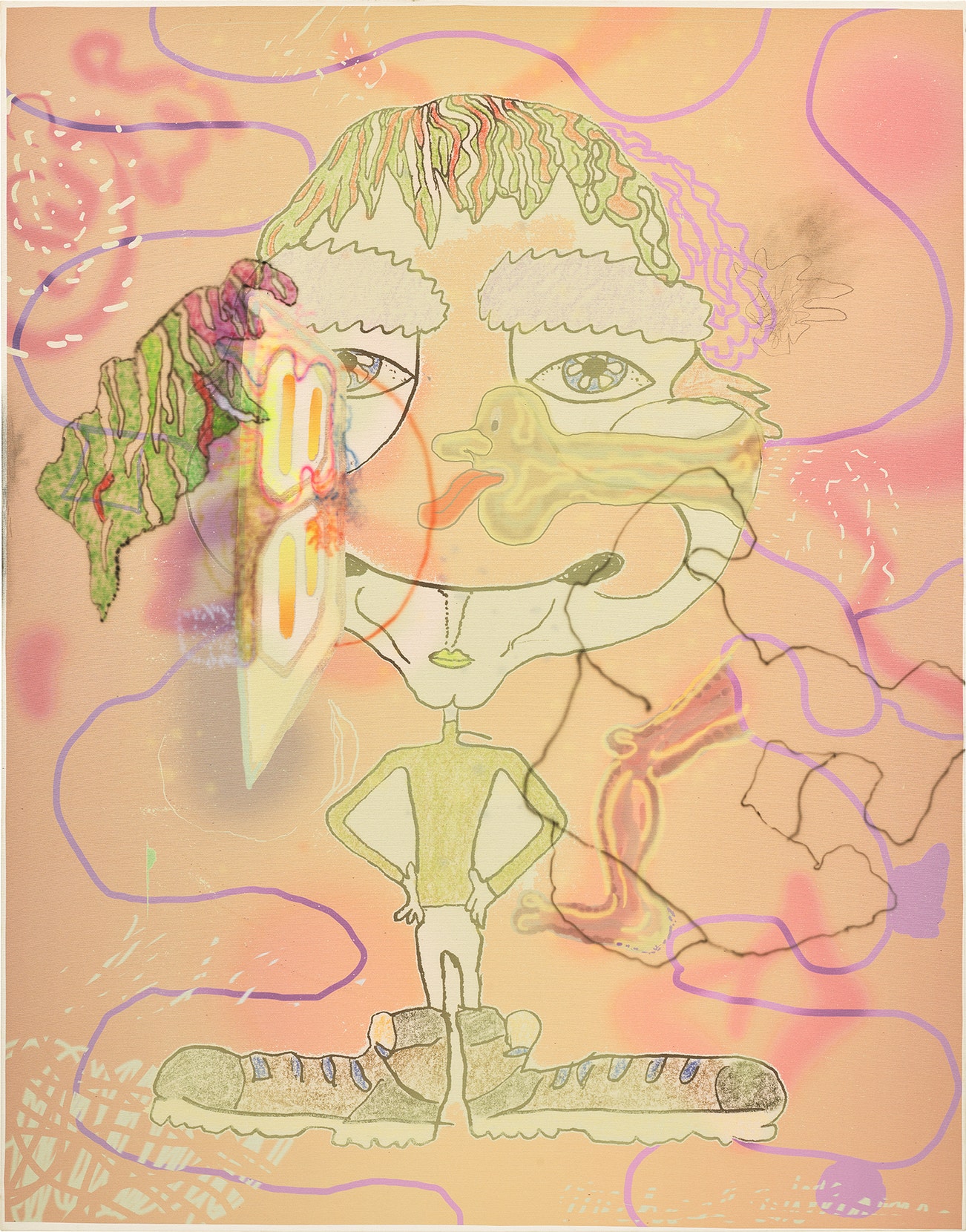 inkjet, airbrush and charcoal on canvas