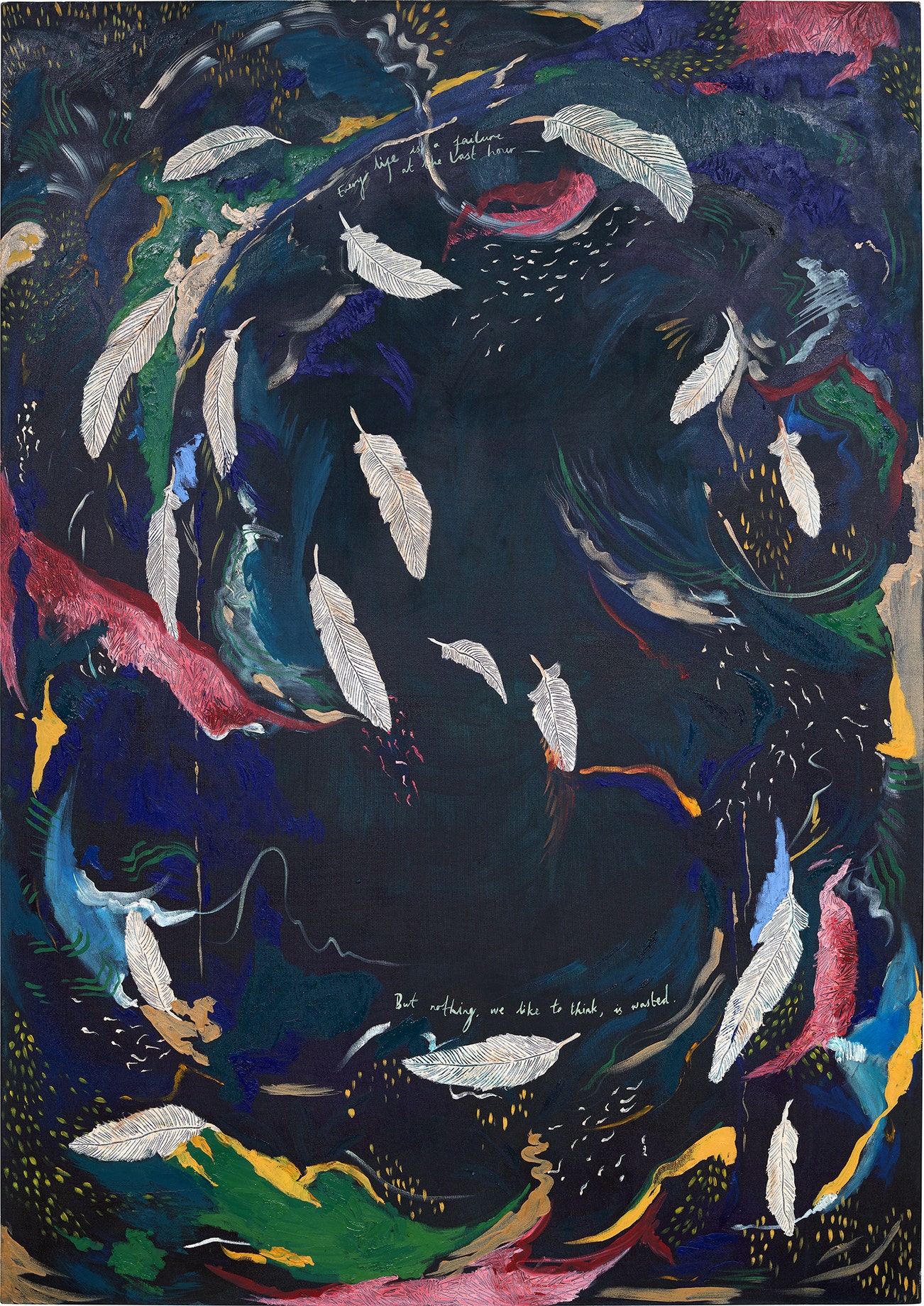 signed, titled and dated '"Feather (A Salute to You Mr Magpie)" 2020 Michaela Yearwood-Dan' on the reverse