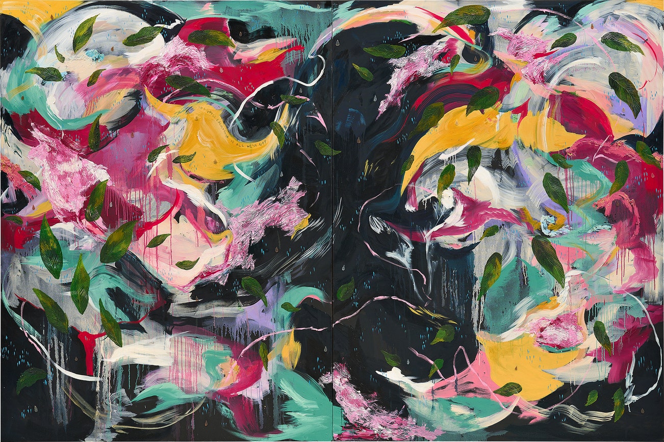 acrylic, oil and Swarovski crystals on canvas, diptych