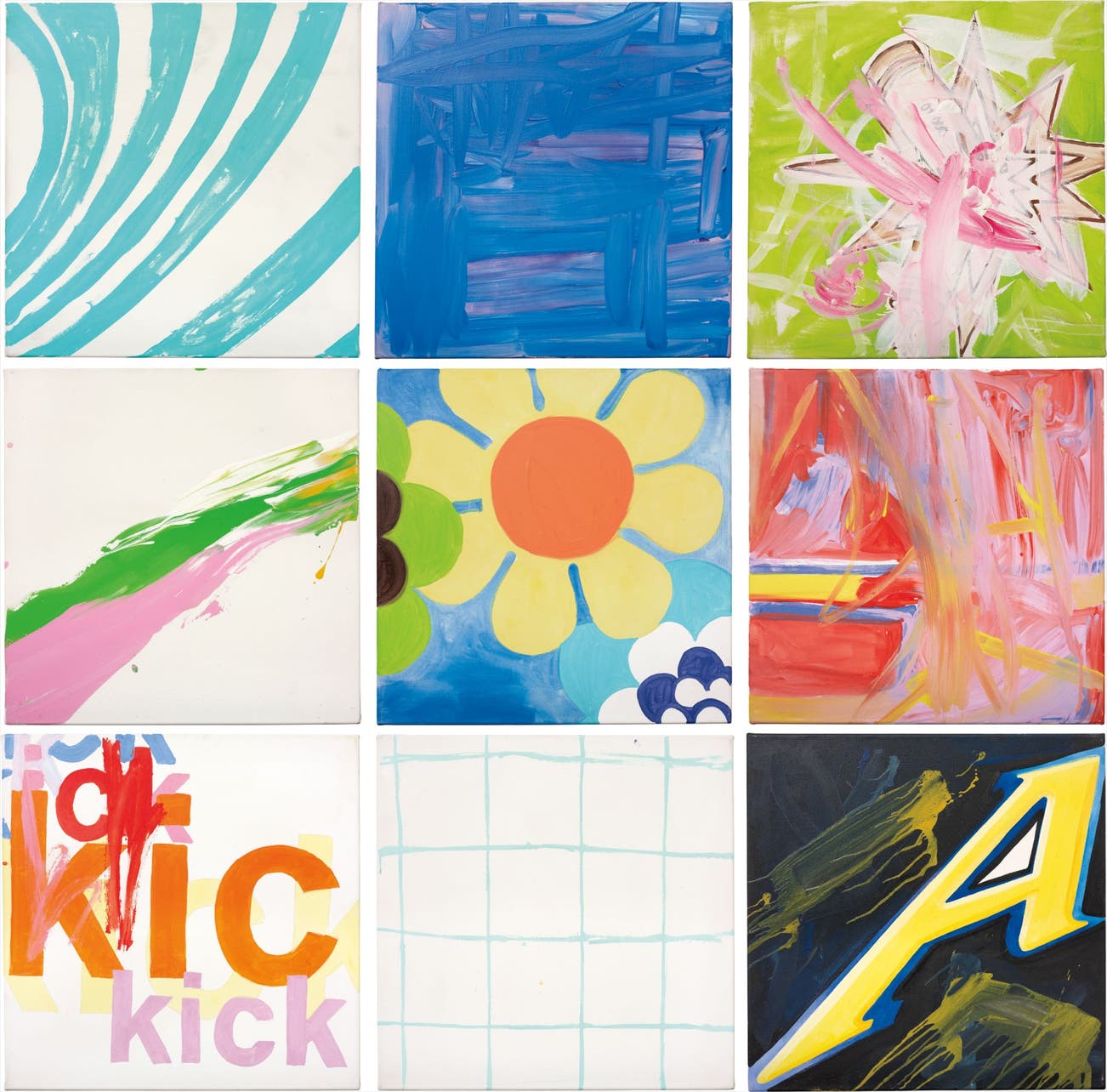 pencil, acrylic on canvas (in 9 parts)