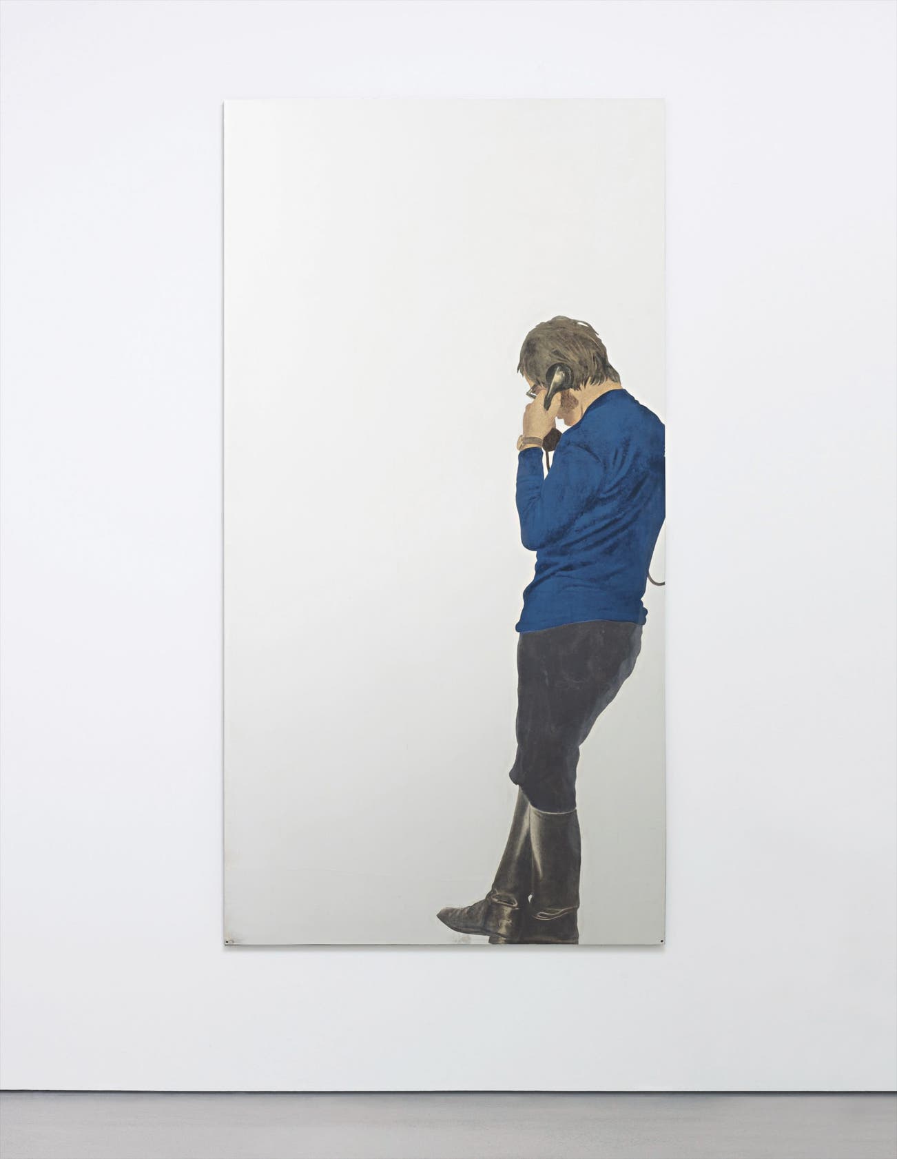 Since the 1964 Sonnabend exhibition in Paris, Michelangelo Pistoletto has been acclaimed internationally for his ‘mirror paintings’. Pistoletto found in the mirror the congenial material for his practice and theory as a sight for exploring ideas of time, perspective and image-making. The work is visually straightforward, a flat vertical mirror on which a coloured silkscreen has been applied. The latter represents the life-size image of the artist in 1970s clothes and haircut, giving his back to us. The viewer enters the work through his reflection; however, completely absorbed in his fictitious conversation on the phone, the artist does not seem to notice such an intrusion. The historically connotated image of the artist and the viewer’s reflection co-exist on the mirrored surface as co-protagonists of the work of art; past and present are intertwined, revealing the mirror’s state of flux, its potential to always actualize itself while maintaining a link with the past. Never so radically and clearly, has time entered the art work as one of its fundamental coordinates. This experience of fluctuating time is felt/experienced not only by the viewer but also by the artist. Indeed, his ‘mirror paintings’ are a fruitful project through which Pistoletto explores the relationship between himself and ‘the world in time’. The mirror is the eye that sees reality, absorbs it and projects it back as revelation: the image of ourselves and of the space that surrounds us not only becomes available to our eyes, but is also perfectly volumetric and in perspective. "A mirror expands the possibilities of the eye and the capacity of the mind so far as to offer a vision of totality." (M. Pistoletto, L'arte assume la religione, 1978 quoted in Germano Celant, Michelangelo Pistoletto, New York, 1989, p. 28).