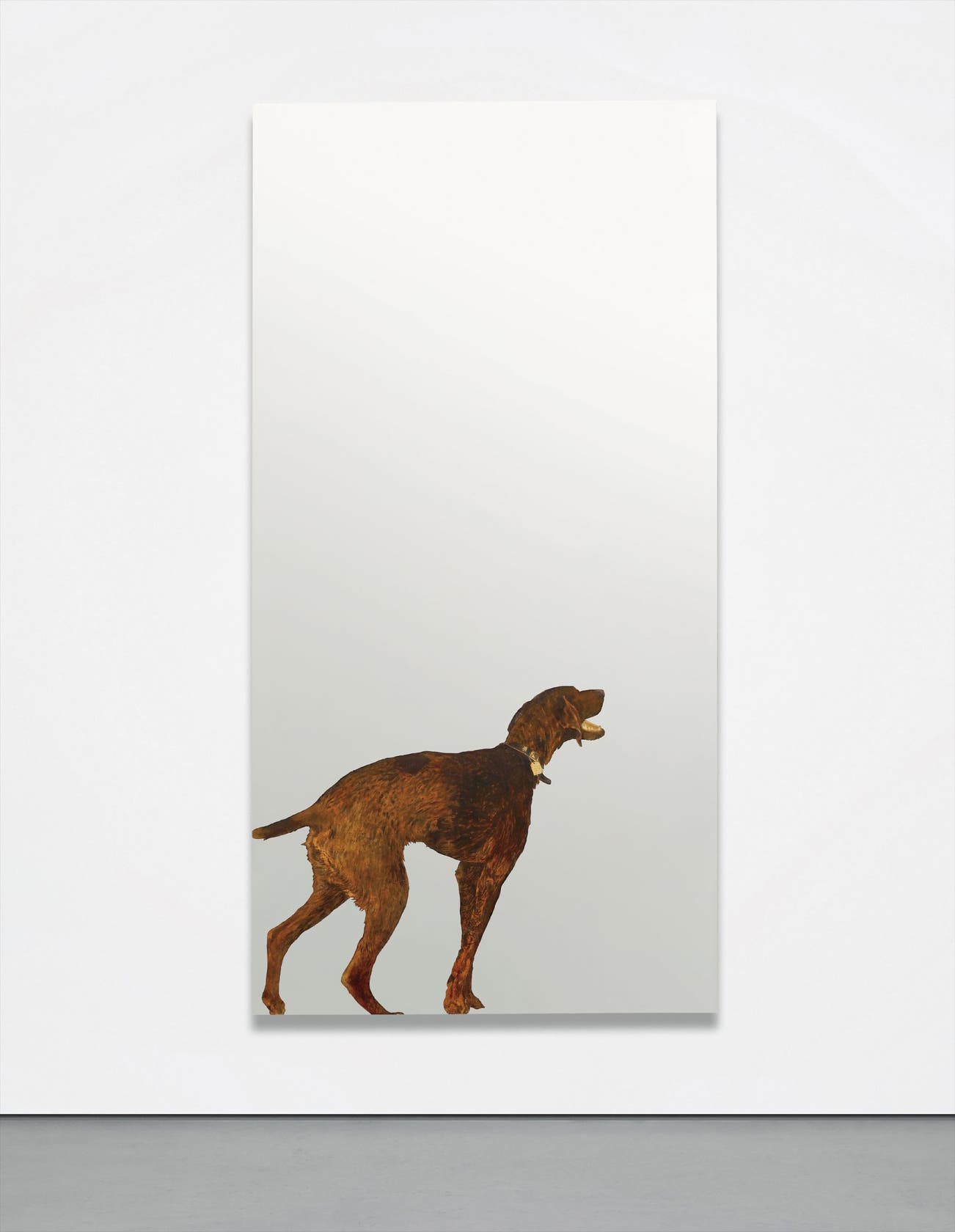 The coldness of the mirror and the warm feeling of the drawing on paper was combining the Italian tradition with the future, bridging two different visions of art and life. The use of a dog as a subject rather than a human figure represent a rare example of timeless work, since the dog cannot express the fashion of the time like the figures could, locking the work in a very specific historical and cultural moment. The dog has a strong dynamic, activating the empty reflecting surface more than any static figure.