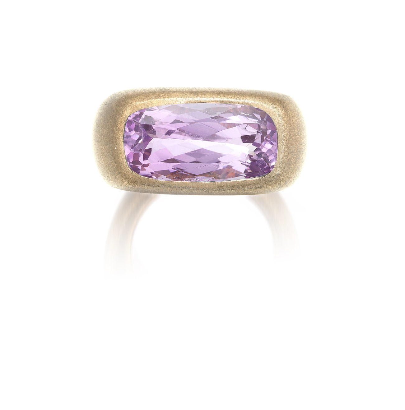 Bezel-set with a cushion-shaped kunzite, mounted in bronze, size 6, signed Michele della Valle, maker's mark, pouch stamped Michele della Valle.
