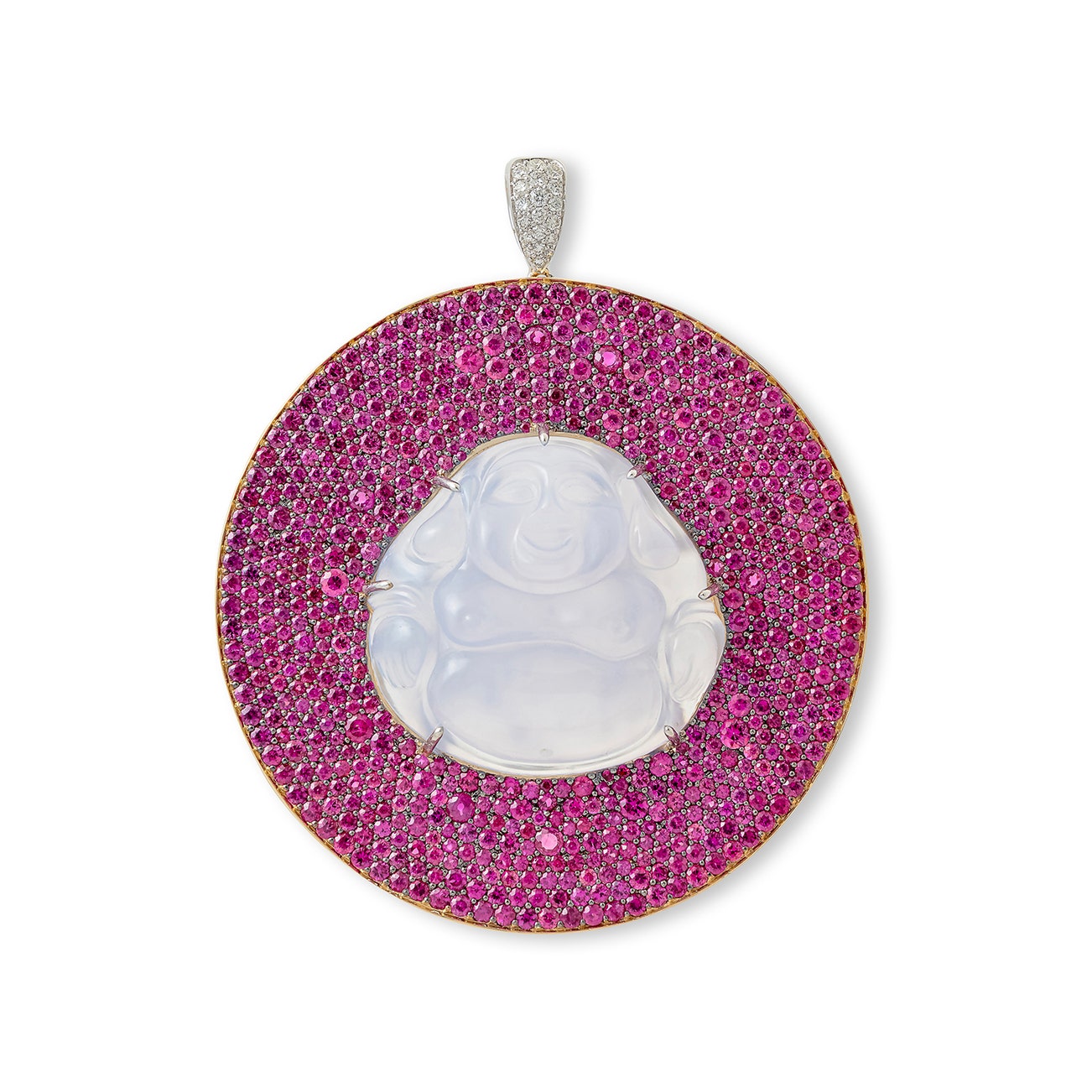 Chalcedony, ruby and diamond pendant