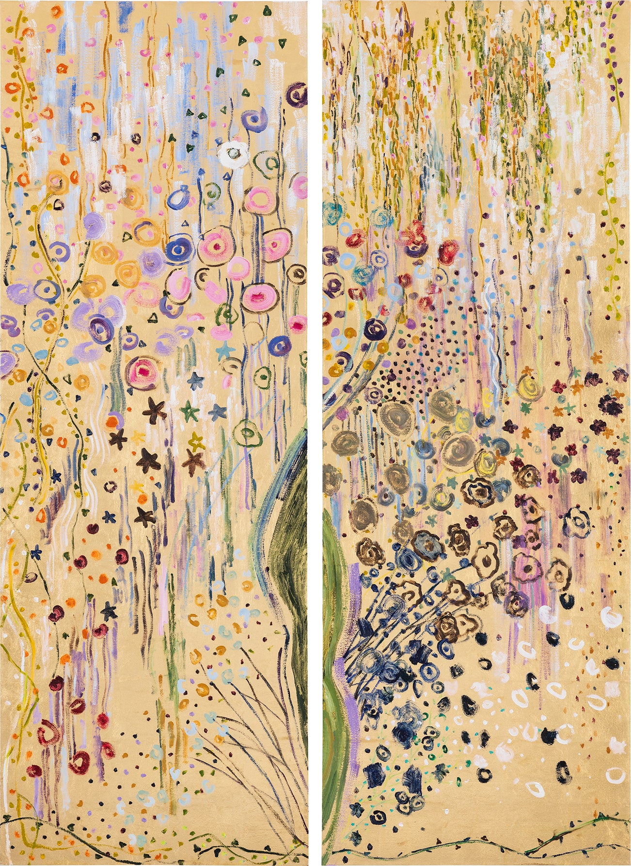 signed, titled, inscribed and dated '"Garden of Peace" Diptych New york Ny 2019 Michelle Sakhai.' on the reverse of each panel and numbered 'I' and 'II' respectively