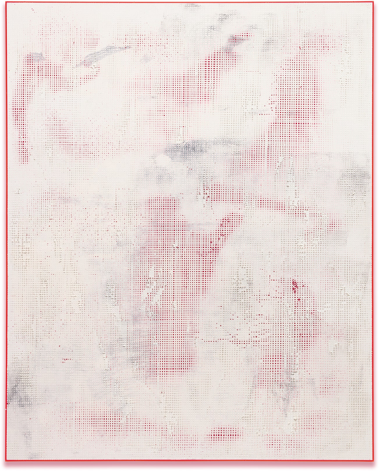 oil and spray paint on canvas, in acrylic artist's frame