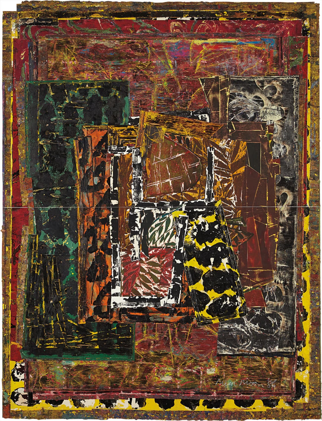 Monotype in colors with calico and collage, on two sheets of wove paper, the full sheet,