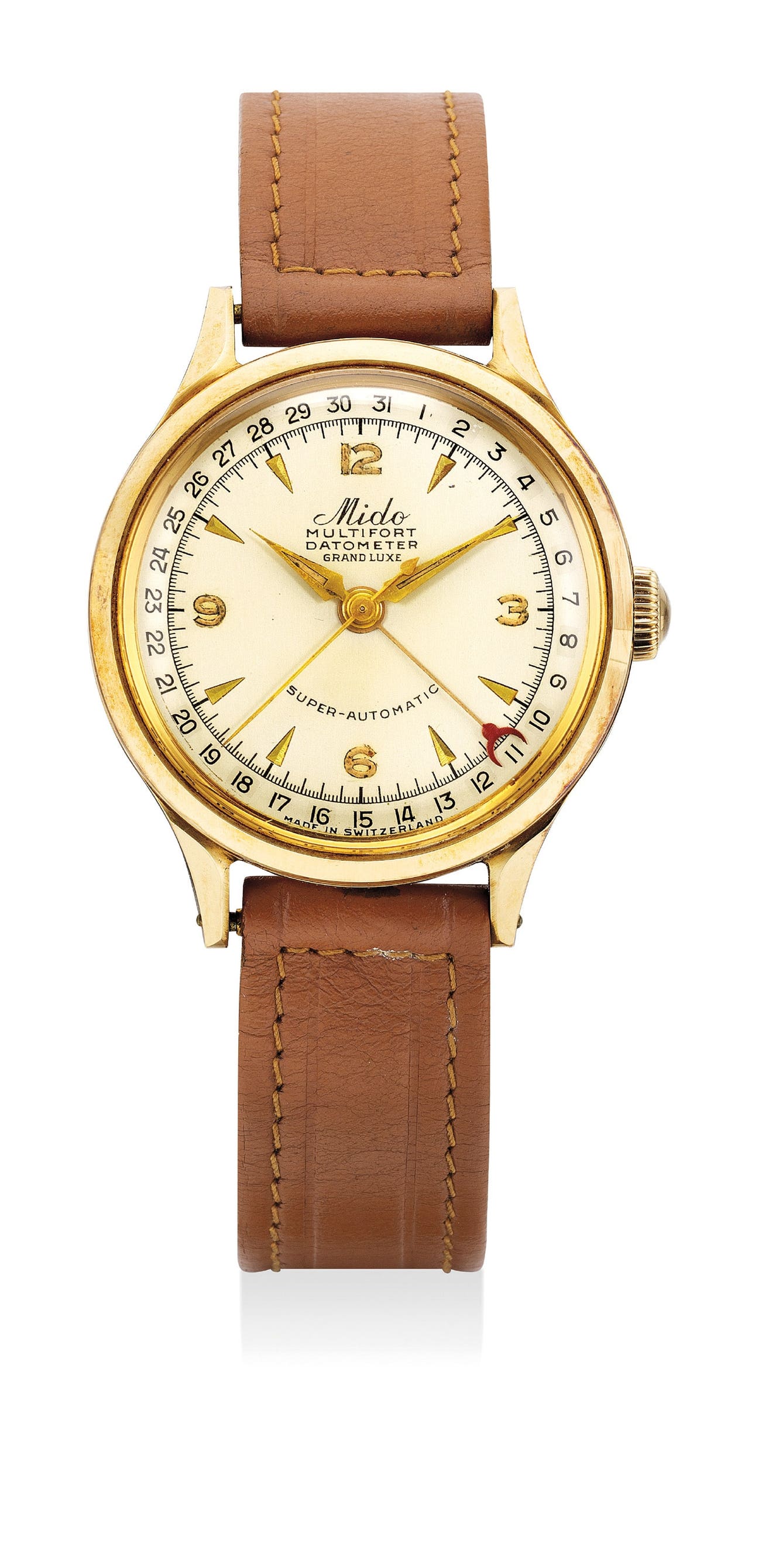 First launched in the 1940’s, the Mido Datometer housed the caliber D 917 featuring a bumper rotor. An effort to circumvent Rolex's patent on what is now known as the "traditional" rotor, this particular rotor moves on a 180 degrees arc before being stopped by springs.