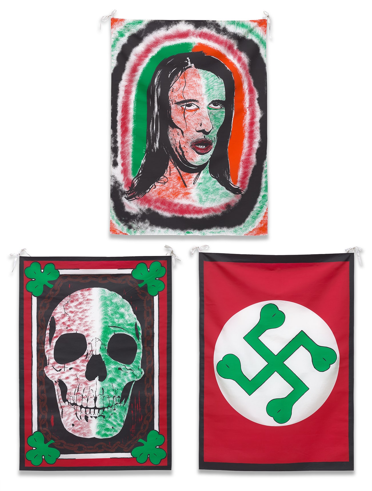 Three screenprints in colours, on silk scarves.