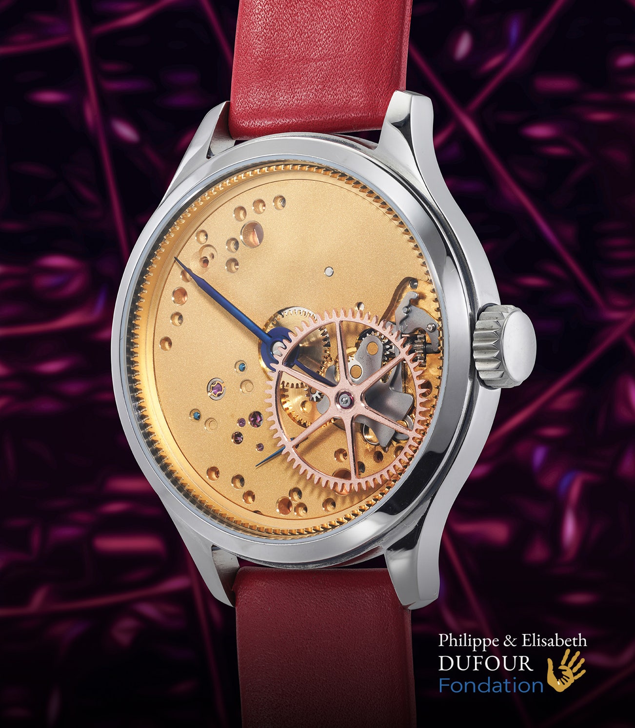 An unusual stainless steel wristwatch with skeletonized dial, with proceeds going to charity