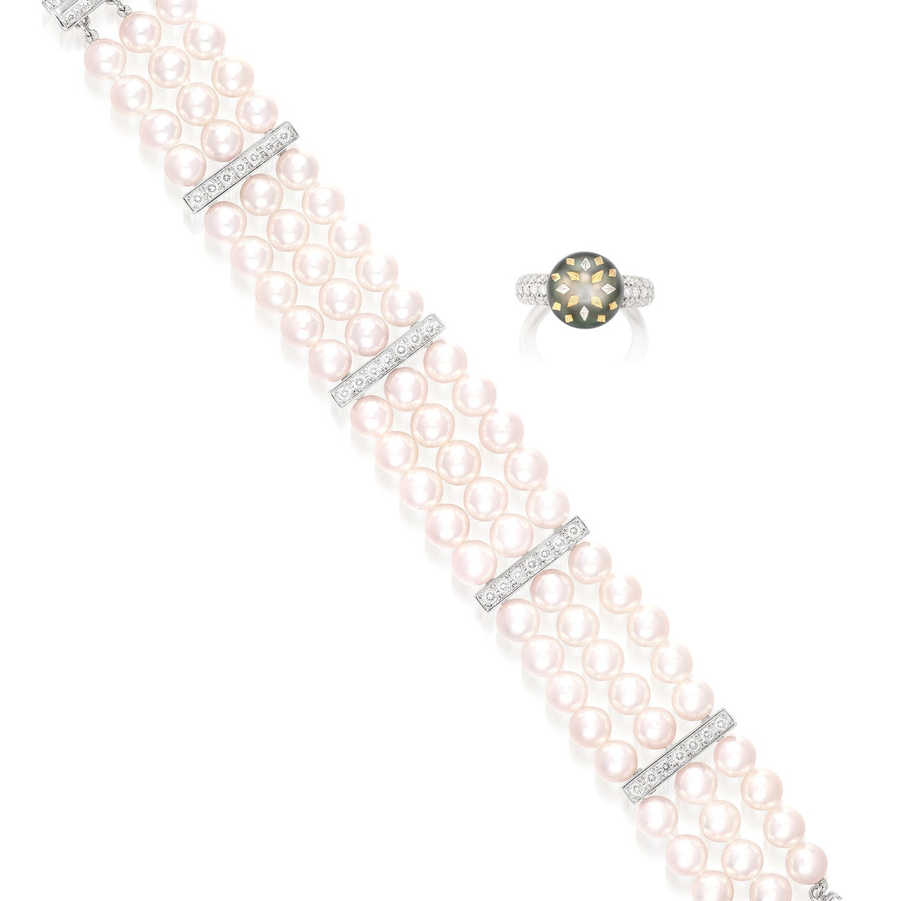 - Sixty-nine white cultured pearls, measuring approximately 5.97 mm to 6.46 mm