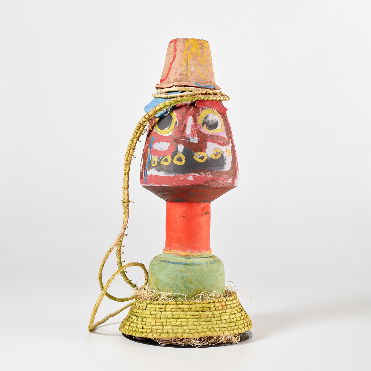 rattan, wood and paint on ceramic