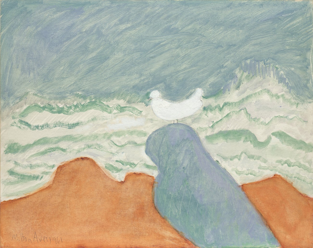 signed and dated 'Milton Avery 1961' lower left; signed and titled '''Bird by Wild Sea'' by Milton Avery' on the reverse