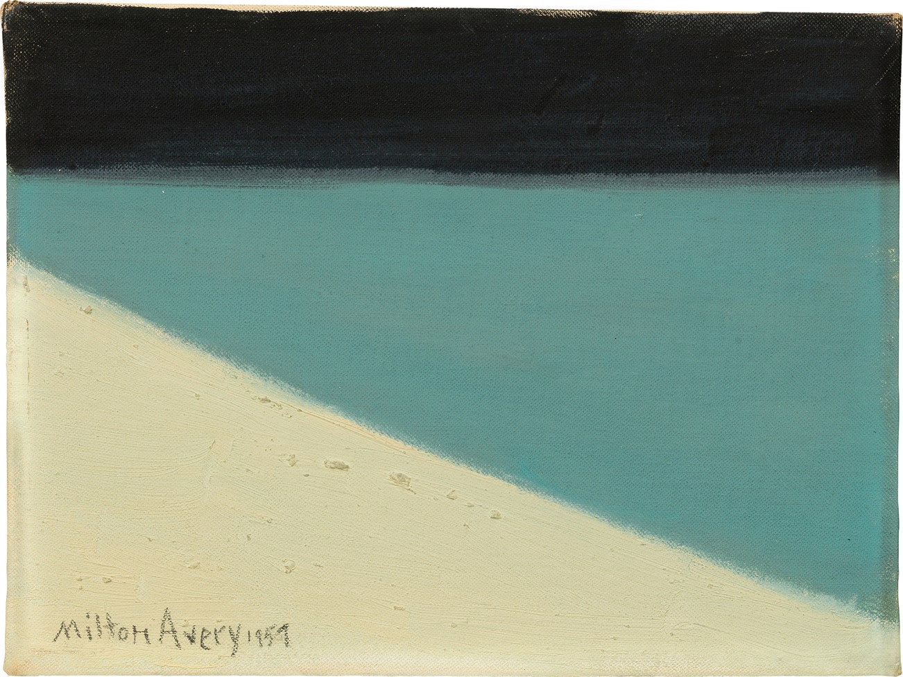 signed and dated "Milton Avery 1959" lower left; signed, titled and dated "DARK SEA, DARK SKY by Milton Avery 1959" on the reverse
