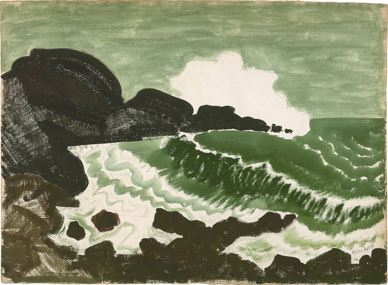 signed and dated "Milton Avery 1948" lower right; inscribed "Green Sea by Milton Avery 1948" on the reverse