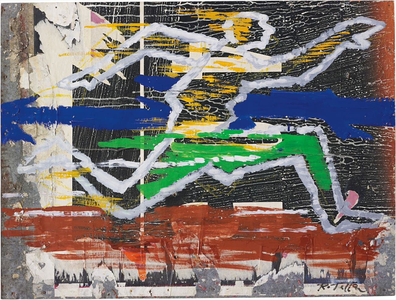 Signed 'Rotella' lower right. Titled 'Nuovo Futurismo (uomo che corre' on the reverse.