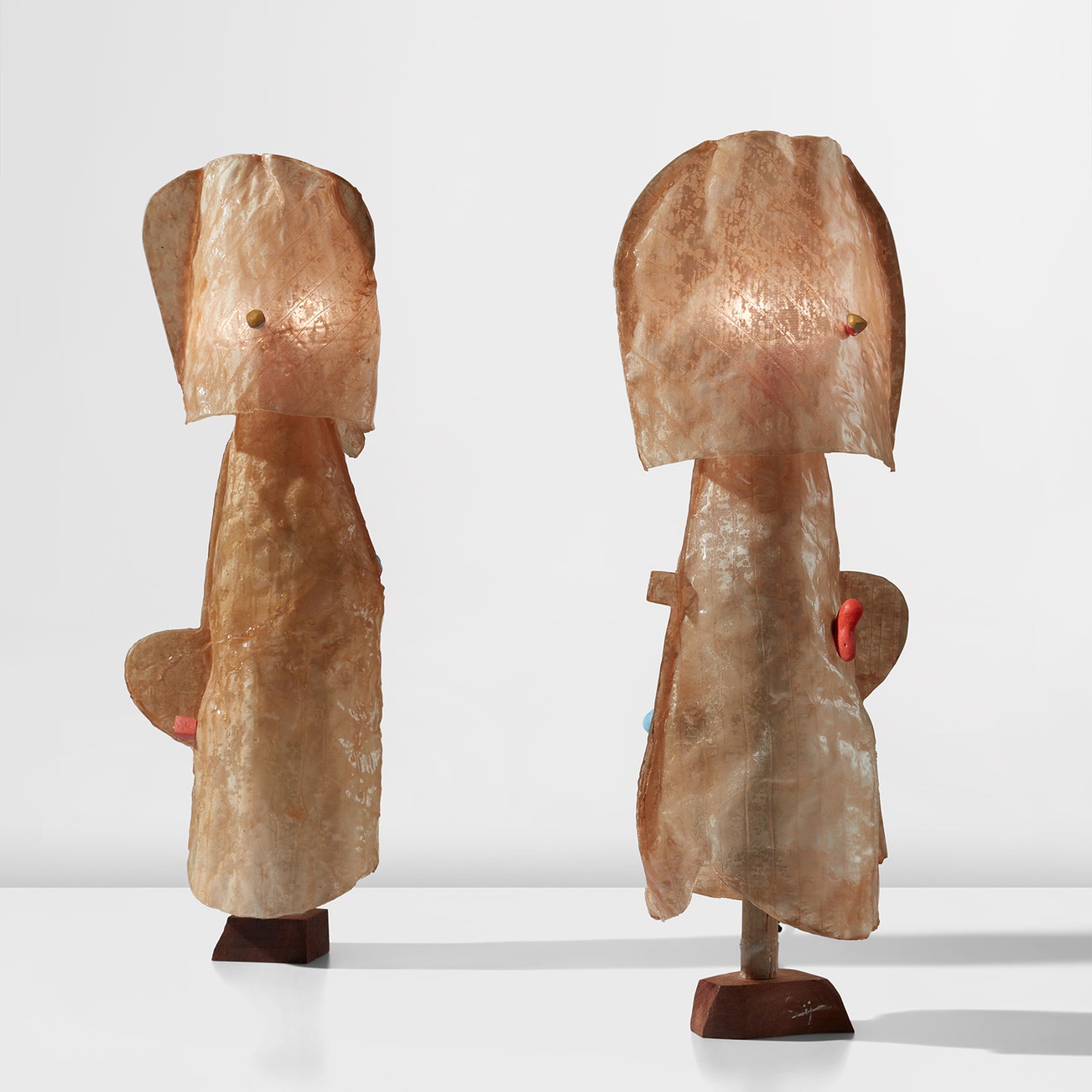 Resin-coated fiberglass, bamboo, oak, painted plaster.