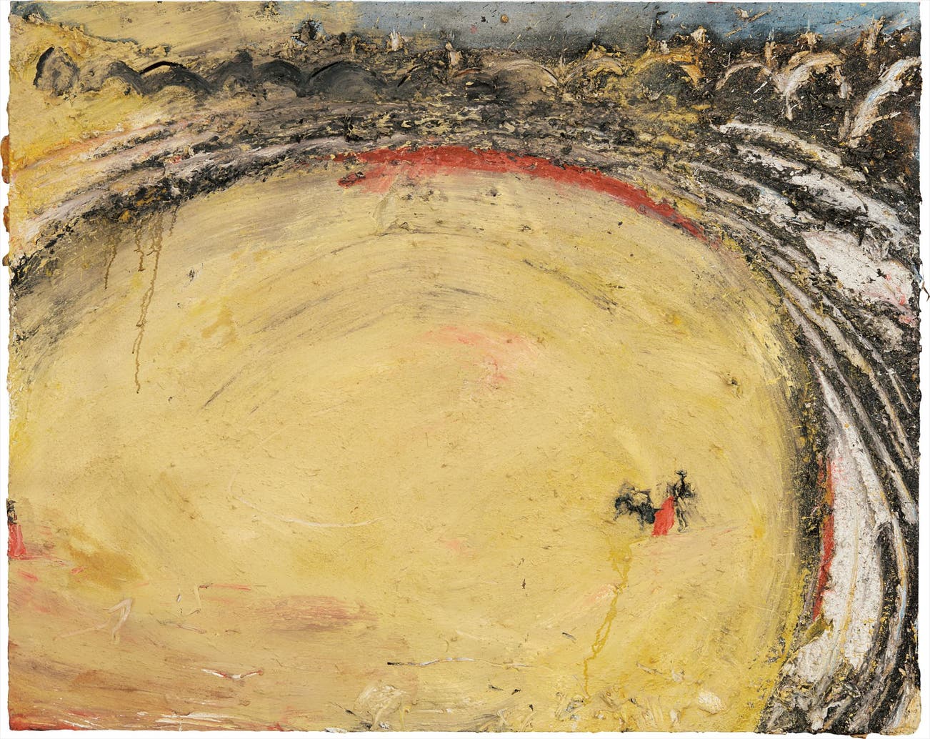 For Barceló, even the process of creating his bullfight paintings was linked to its subject matter, existing in a perfect, poetic parallel. After all, as he explained, 'I put myself in the middle of the picture, making turns, with the same movements as a bullfighter. The sand in the ring is full of footmarks and becomes the setting in which to paint. The arena takes up the whole scene, almost leaving out the crowd from the picture. The painting is overfull’ (Barceló, quoted in Miquel Barceló: Obra sobre papel 1979-1999, exh. cat., Madrid, 1999, p. v).
