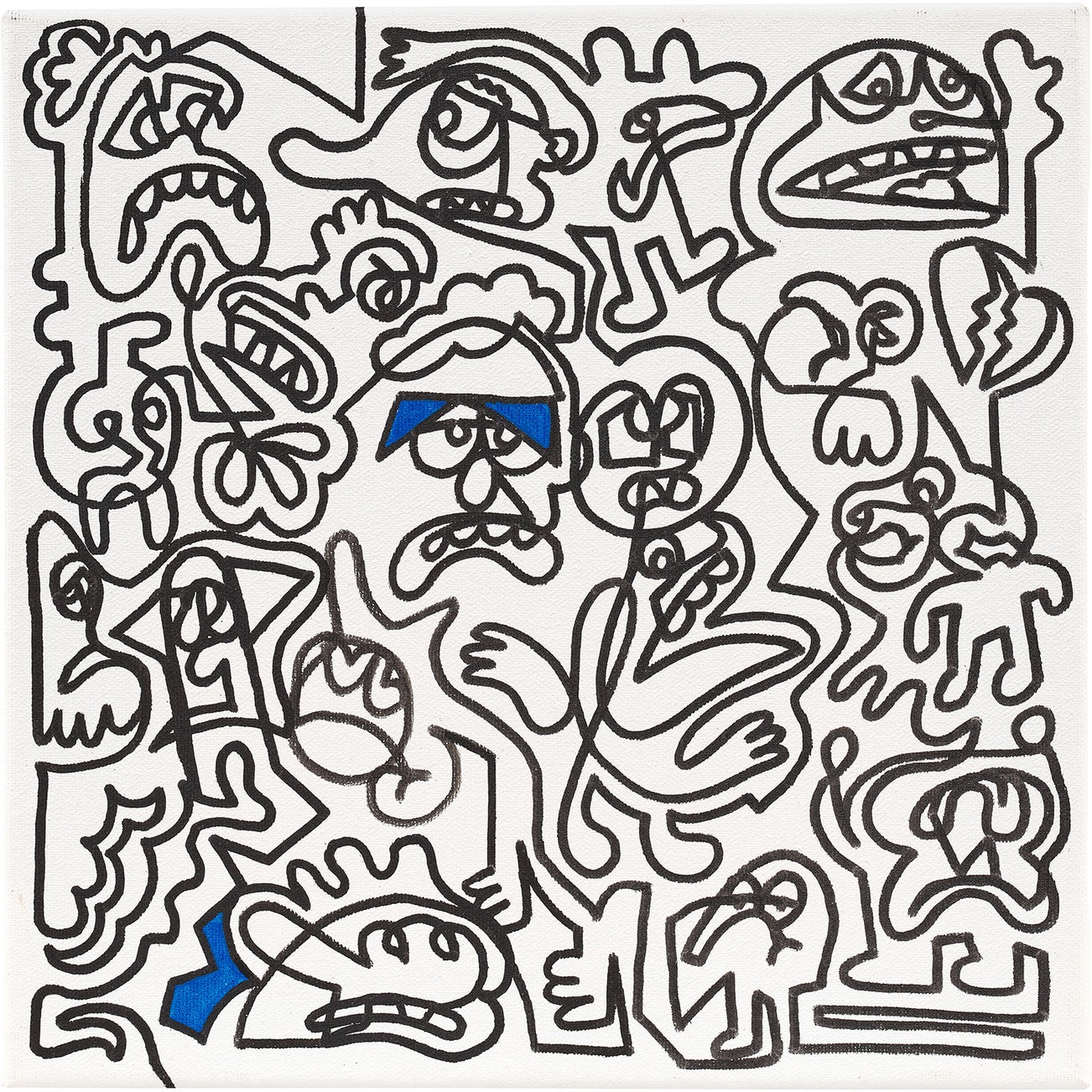 signed, titled and dated ' "UNHAPPY FRIENDS" MR DOODLE! 2018' on a label affixed to the stretcher