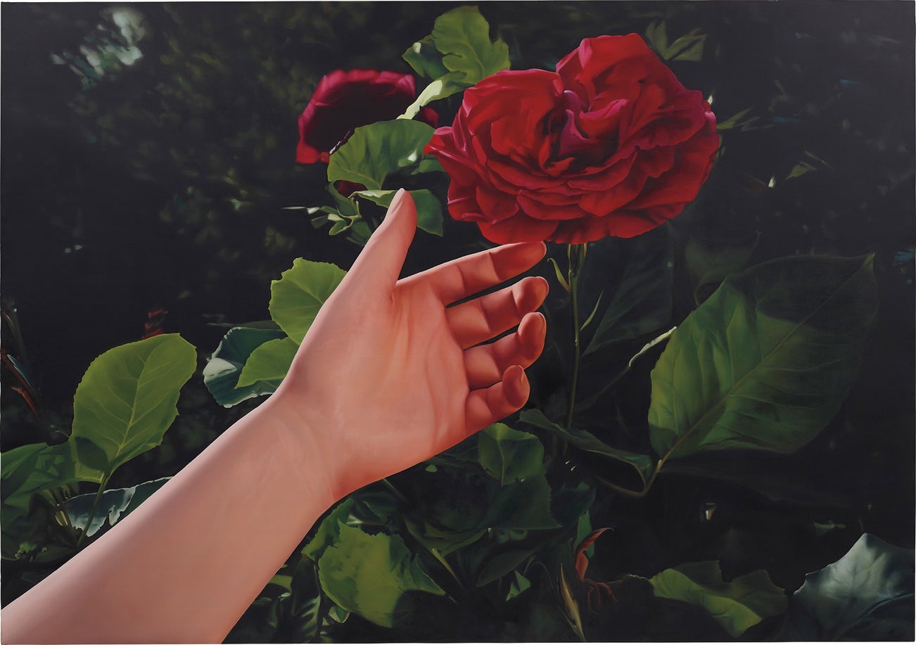 signed, titled and dated 'MUSTAFA HULUSI. UNTITLED (RED ROSE AND HAND) 2005' on the overlap