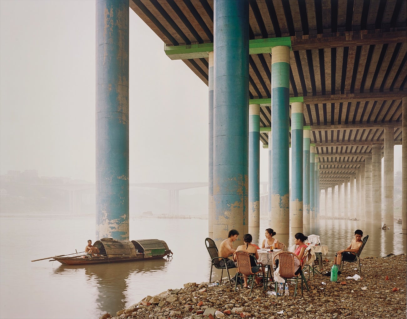 The tranquillity of the vast Yangtze River is contrasted by the miniaturised human presence, reminding us of the historic connection between the people and this indomitable waterway. An image whose classical references have led Michel Strauss to nickname it Le Déjeuner sur l’herbe, this Sunday picnic is a key work from the Yangtze, The Long River series and showcases Kander’s desire to parallel the insignificance of man with the might of nature. In 2009, Kander won the Prix Pictet for his portfolio submission of Yangzte, The Long River, in which this image featured prominently.