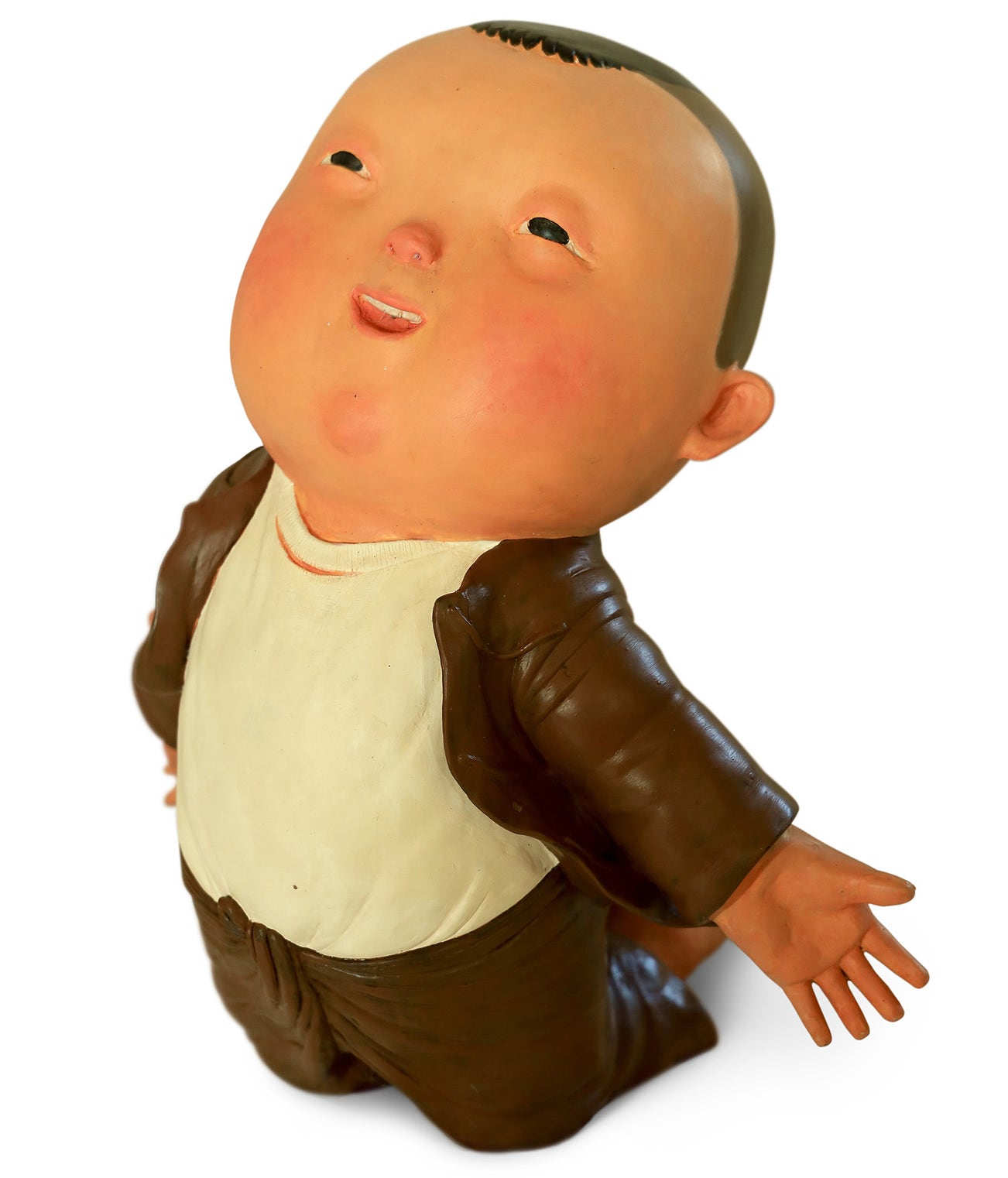 Naidee Changmoh (b. 1969, Thailand) is known for his cartoon-like monk sculptures that represent positive thinking, peace and simplicity. Naidee studied painting at Chiangmai University, however after graduating in 1993, he began to learn techniques to make terracotta pottery at Maungkung Village, Amphur Hangdong in Chiangmai. Since then, his main interest has been in ceramics.