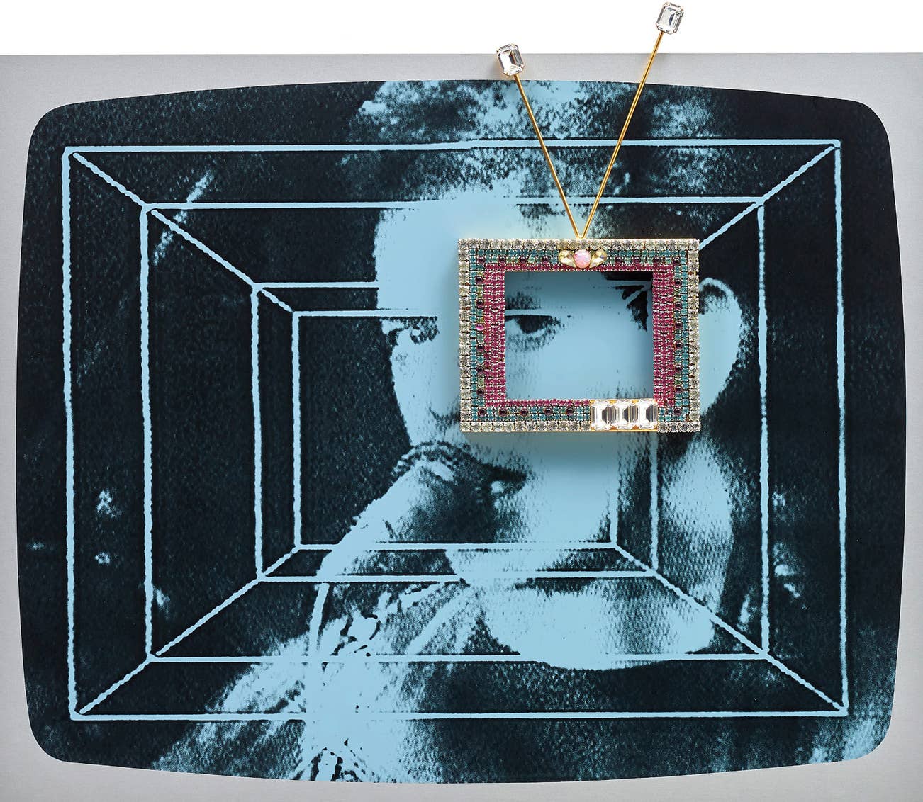 Screenprint in colours on aluminium, with brass and rhinestone sculptural element.