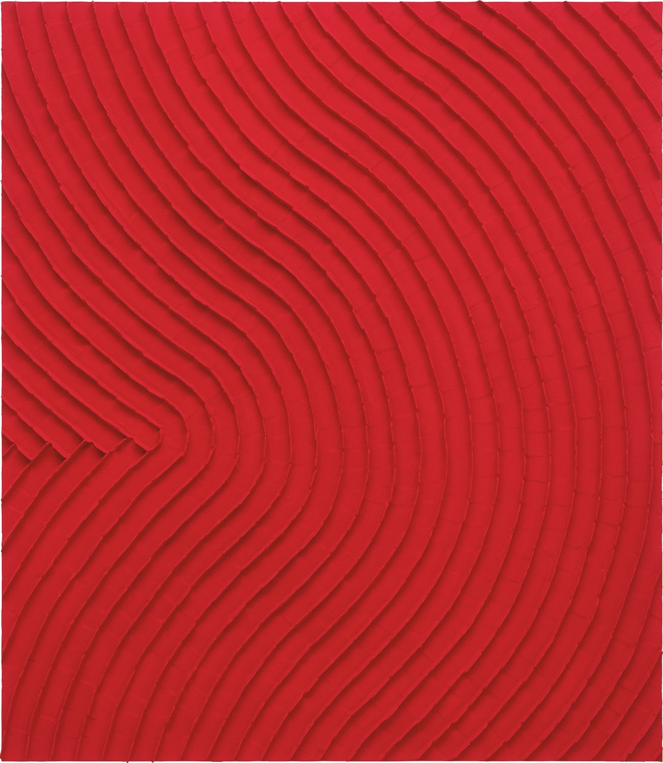 One of the most significant post-Dansekhwa artists, Nam Tchun Mo sets himself apart from his predecessors through his masterly technique of combining three dimensional elements with the two dimensional. Through the repetition of simple lines in natural oriental colours, rendered dynamically and rhythmically and using traditional ink and hand-dyed fabric, he creates works that skilfully break down boundaries between painting and sculpture where light and shade collide.