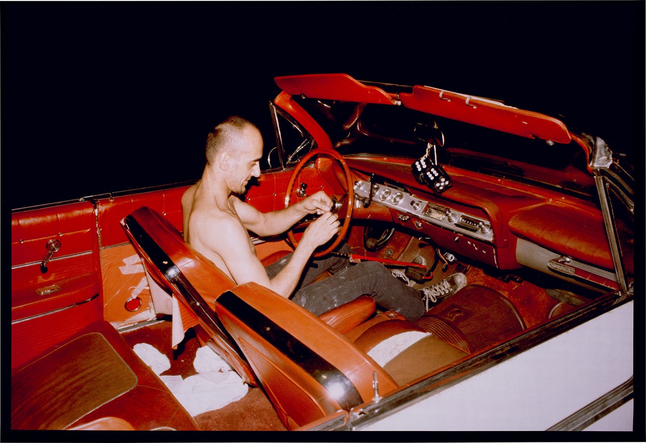 signed, titled, numbered and dated "Bruce in his red car, NYC. 1981. Nan Goldin #10/25" on a label affixed to the reverse