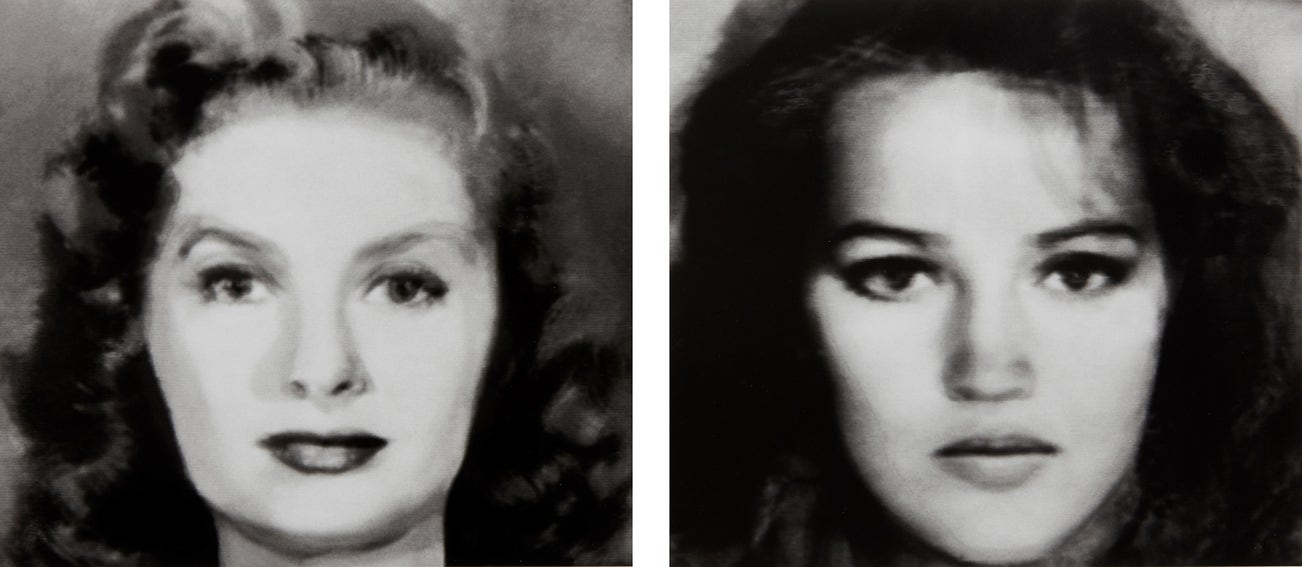 The Beauty Composites digitally blends features of prominent 1950s actresses Bette Davis, Audrey Hepburn, Grace Kelley, Sophia Loren, and Marilyn Monroe in the First Composite and contemporary actresses of the 1980s, Jane Fonda, Jacqueline Bisset, Diane Keaton, Brooke Shields, and Meryl Streep in the Second Composite. The resulting diptych challenges not only the boundaries of what was technologically possible at the time, but also provides commentary on traditional notions of beauty that remain relevant today.