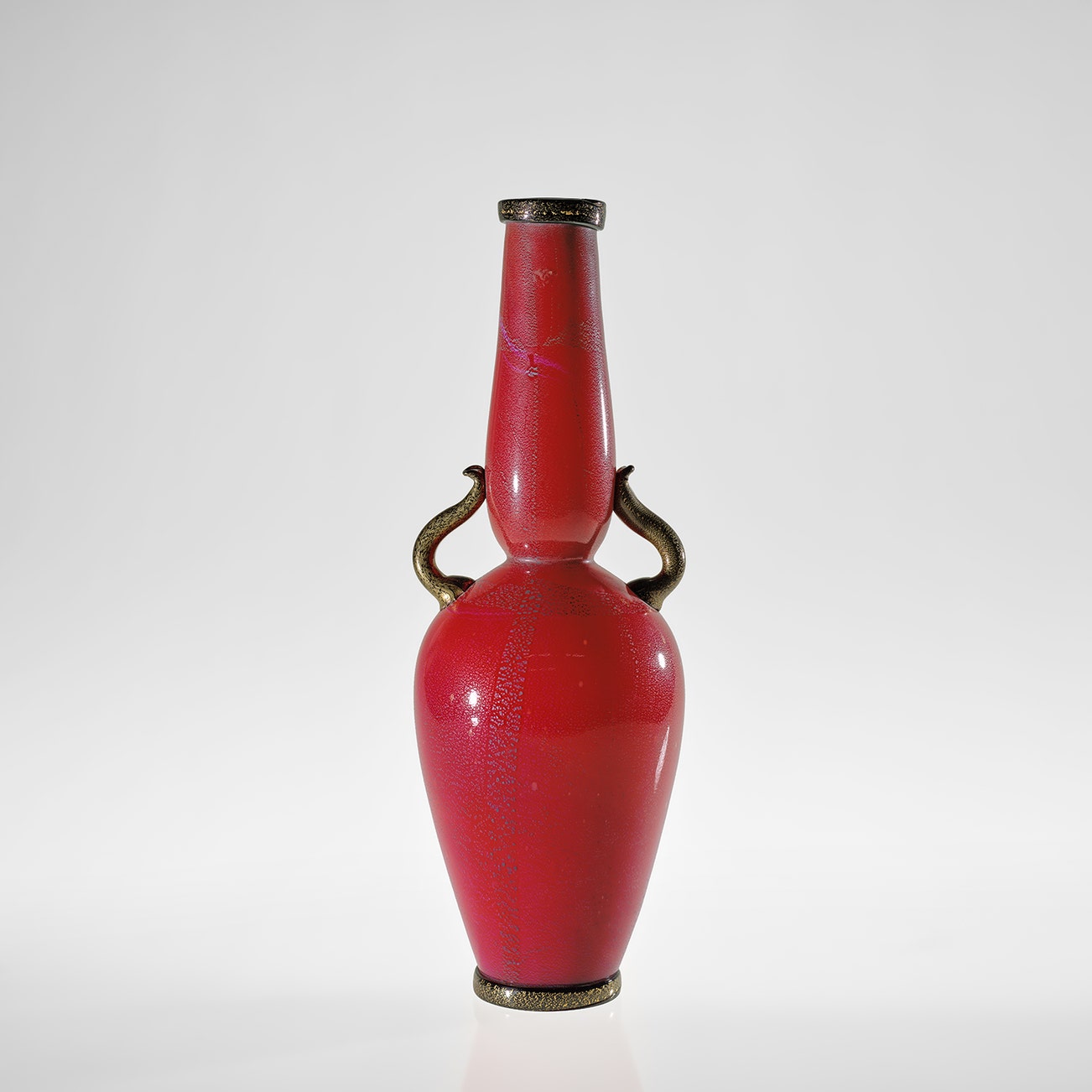 Incamiciato glass with silver and gold leaf inclusions.