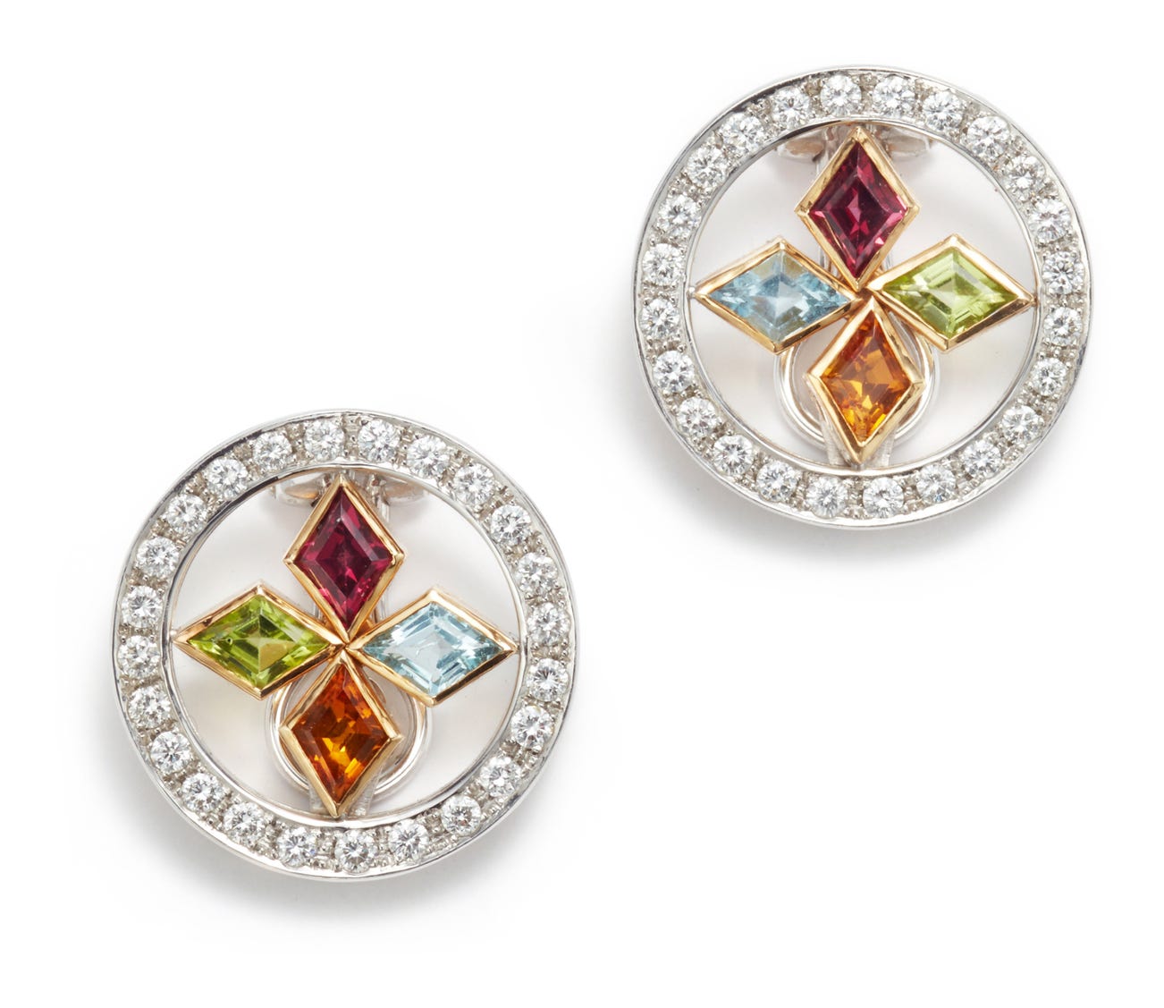 A Pair of Diamond, Citrine, Peridot, Garnet and Aquamarine Earrings