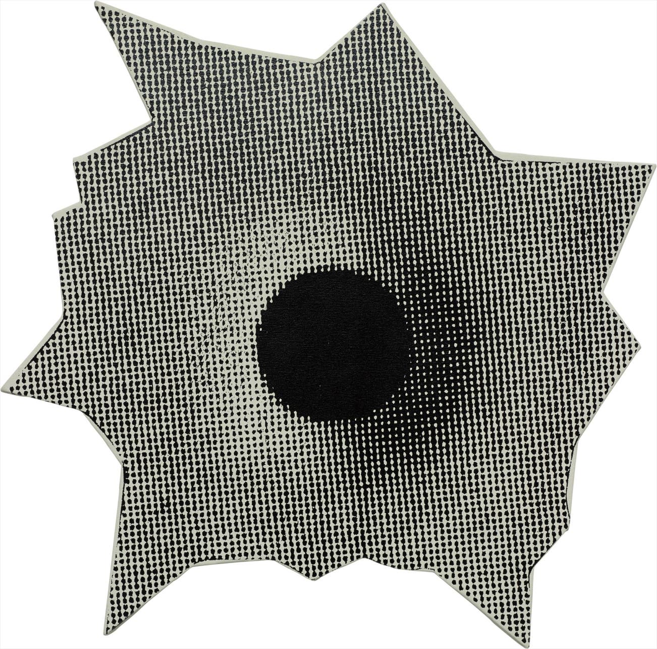 A controversial appropriationist reimagining the tradition of Marcel Duchamp and Andy Warhol, young American artist Nate Lowman reinterprets the quotidian symbols that pervade contemporary popular culture. Highlighting the darker, more sinister side of ubiquitous popular imagery such as the familiar ‘smiley face’ and Warhol’s silkscreen renditions of Marilyn Monroe, Lowman delves beyond their surface symbolism, exploring the subversive nature of such mainstream iconography. In his Bullet Hole series, Lowman draws his inspiration from the most mundane of objects – the car bumper sticker – reappropriating the image to emphasize the simultaneous indifference toward and delinquency of pervasive violence in American culture. Explicitly referencing the absurdity of such apathy amid the undercurrents of violence infiltrating modern society, Lowman inflates these tromp-l’oeil motifs, recasting the Bullet Hole as revised emblem of Americana. Both serious critique of and witty commentary on the themes of violent subcultures, masculinity and urban aggression, Lowman’s Bullet Holes remind us of the ironic and menacing psychology behind mass appropriation in contemporary culture.