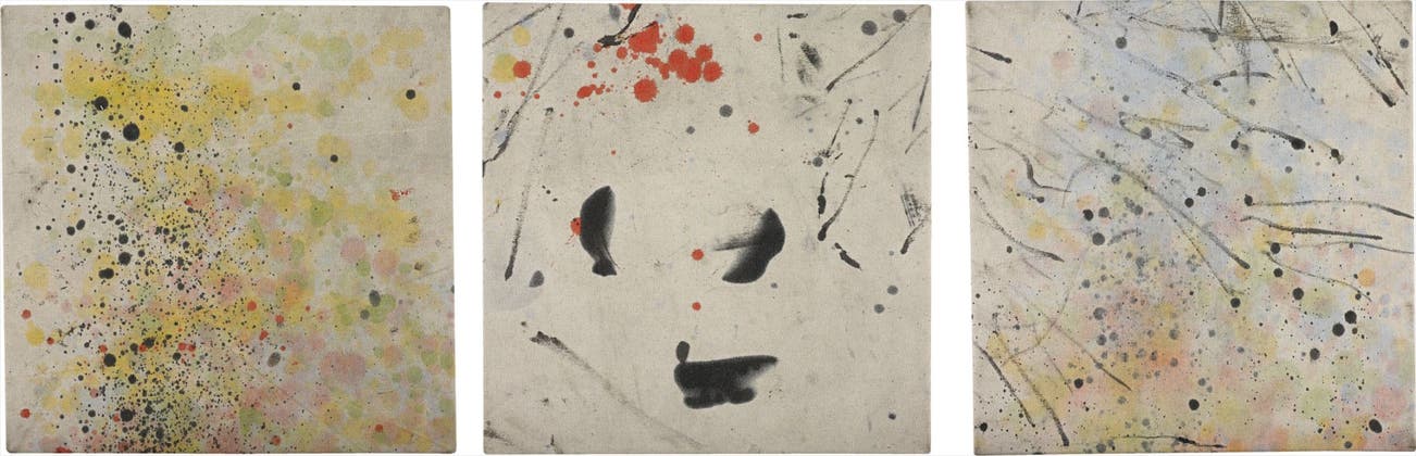 acrylic on unprimed canvas, in three parts