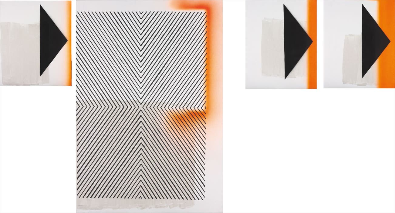 three parts each 79 x 65.5 cm (31 1/8 x 25 3/4 in); one part 171 x 119.5 cm (67 3/8 x 47 in)