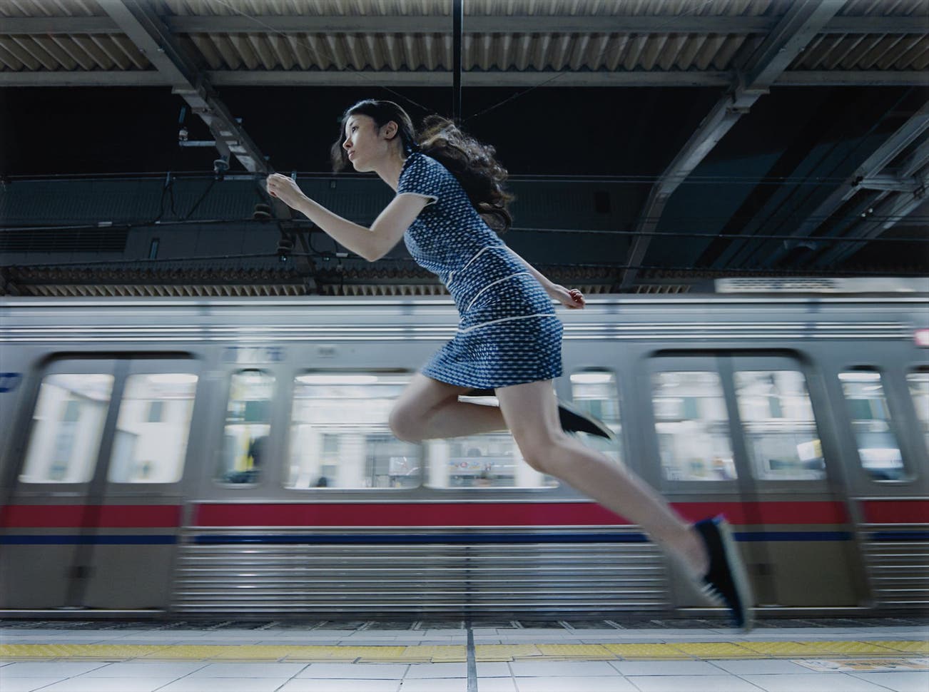 Internet sensation Natsumi Hayashi, who was featured in the New York Times in 2012, continues her ongoing series Today’s Levitation, a fictional photo-journal of the year 2011 comprised of levitating self-portraits. In January 2011, Hayashi began posting her levitations – created without digital manipulation – on her website ‘Yowayowa [feeble] Camera Woman Diary’, alluding to her cumbersome SLR camera. The release from gravity as captured in her series symbolises her desire to be released from the burdens of modern society. To create the present photograph, taken near midnight on the platform of Seiseki-Sakuragaoka station, just outside central Tokyo, Hayashi simultaneously jumped and dashed each time the train arrived. This captivating image stands out in the series as the only one showing both levitation and acceleration.