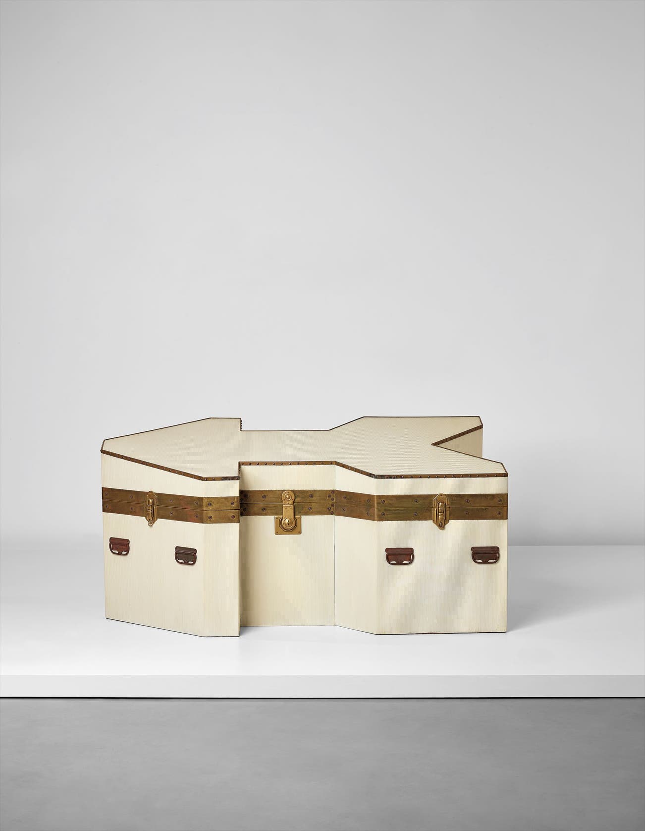 Nazareno Noja (born Salvatore Esposito) created the present “Freccia” trunk in 1976, the same year the Milanese architect Alessandro Guerriero founded Studio Alchimia. Noja participated in several Alchimia exhibitions, although the present work is believed to have been created independently.