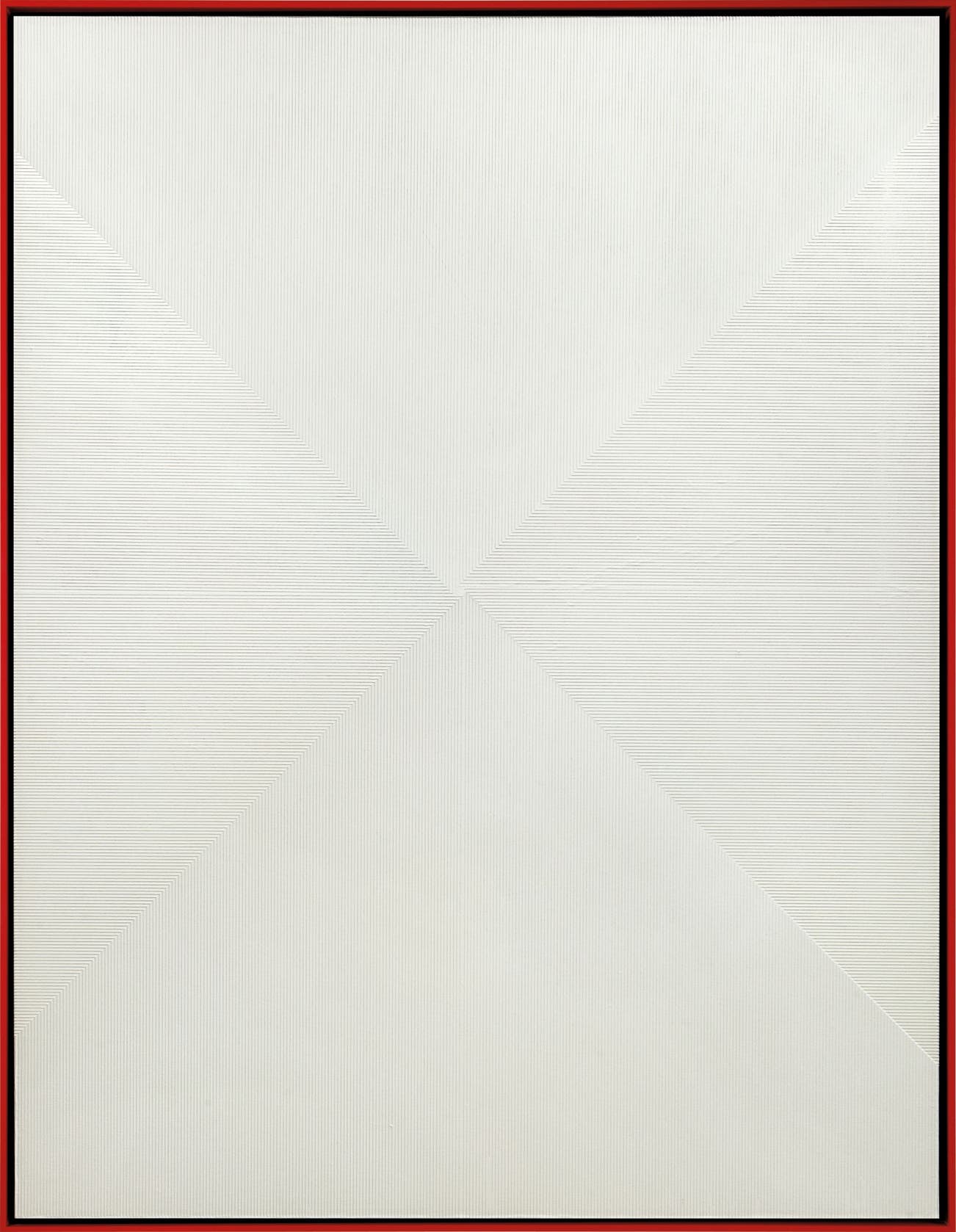 Rustoleum flat white enamel on linen, artist's wood frame