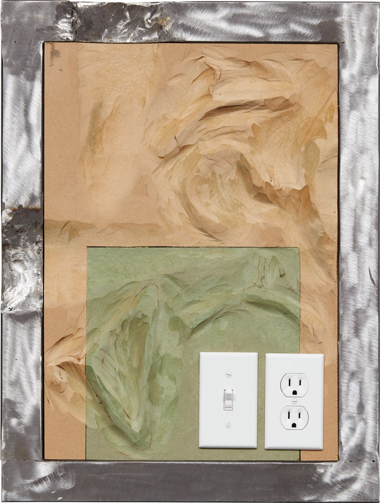 steel frame, compressed wood and electric plugs