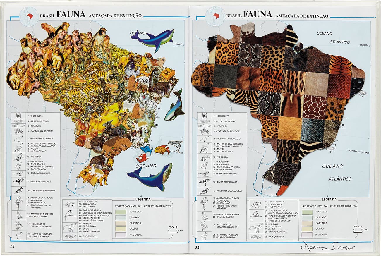pages of atlases, stickers, Plexiglas box