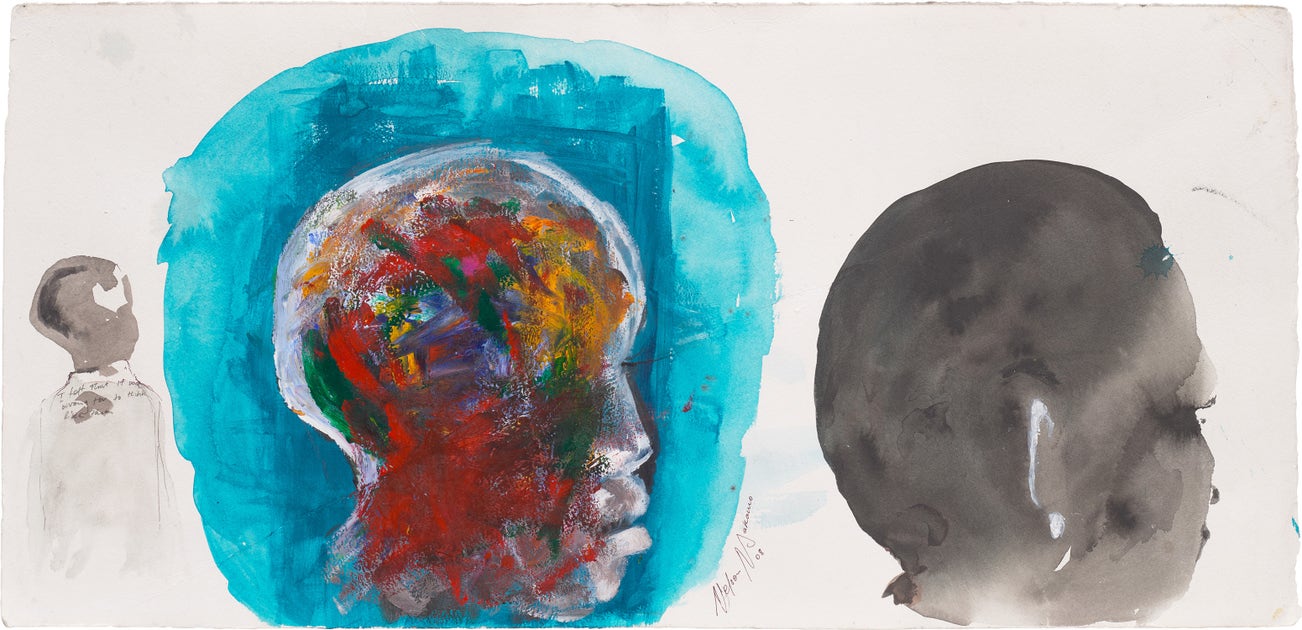 watercolour, acrylic and fine liner pen on paper