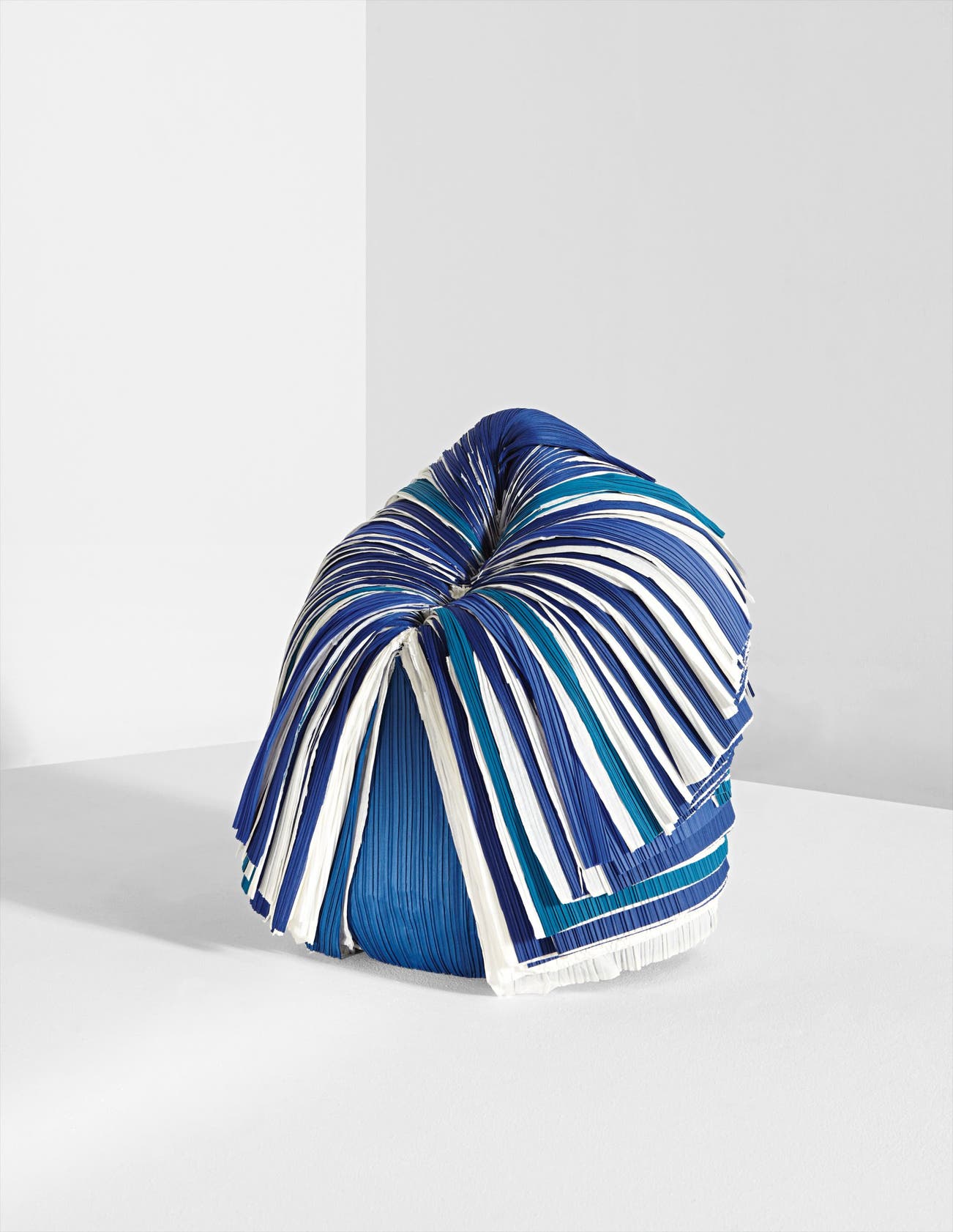 In addition to several white examples, Nendo produced four unique colored “Cabbage Chairs” for the exhibition including a red, an orange, and a green example as well as the present blue. A later edition of 40 white, black, and mixed black & white “Cabbage Chairs” were exhibited the following year at Friedman Benda, New York.